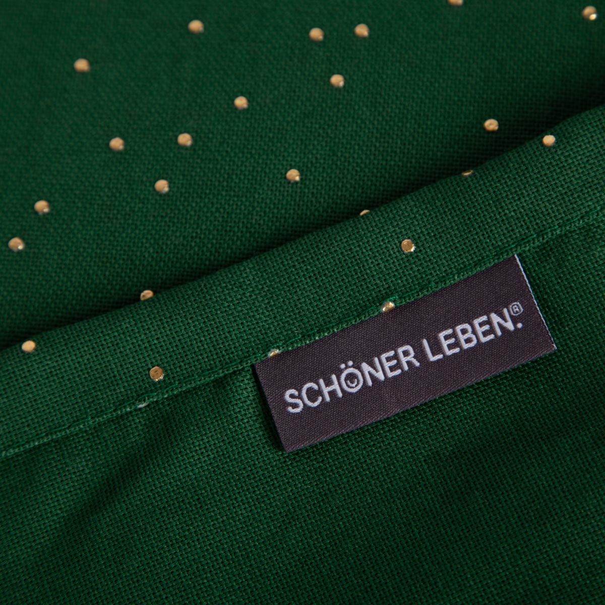 Mit dem SCHÖNER LEBEN. Tischläufer in Grün mit goldenen Punkten verwandelst Du Deinen Tisch in einen eleganten Blickfang. Das kräftige Grün in Kombination mit feinen Golddetails verleiht Deinem Zuhause eine warme und festliche Atmosphäre – ideal für Feierlichkeiten, Weihnachten, Dinnerpartys oder einfach stilvolle Momente im Alltag.
