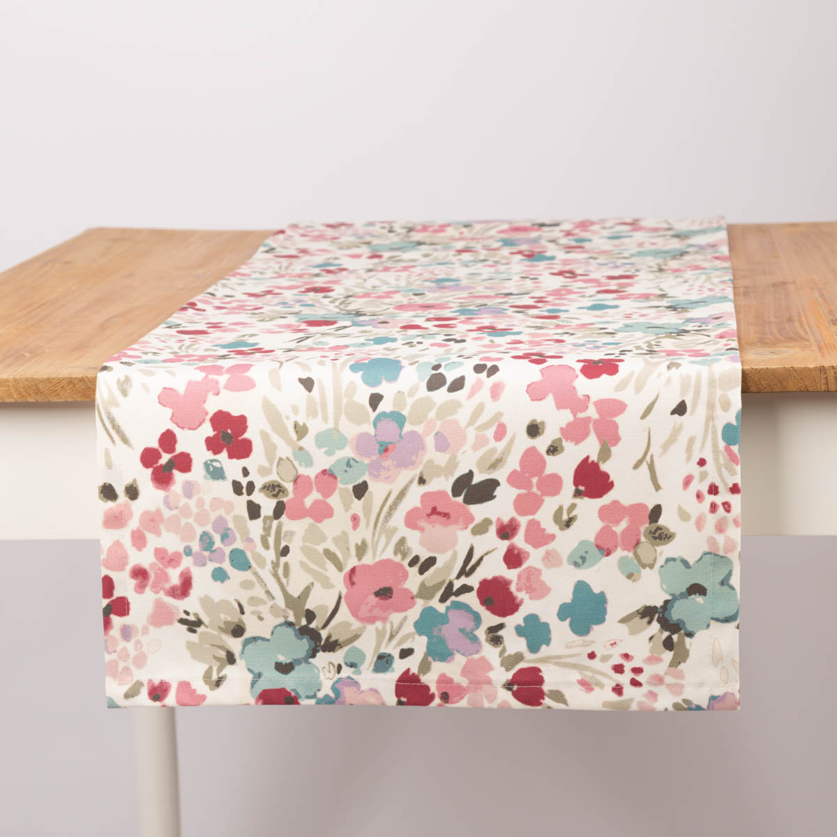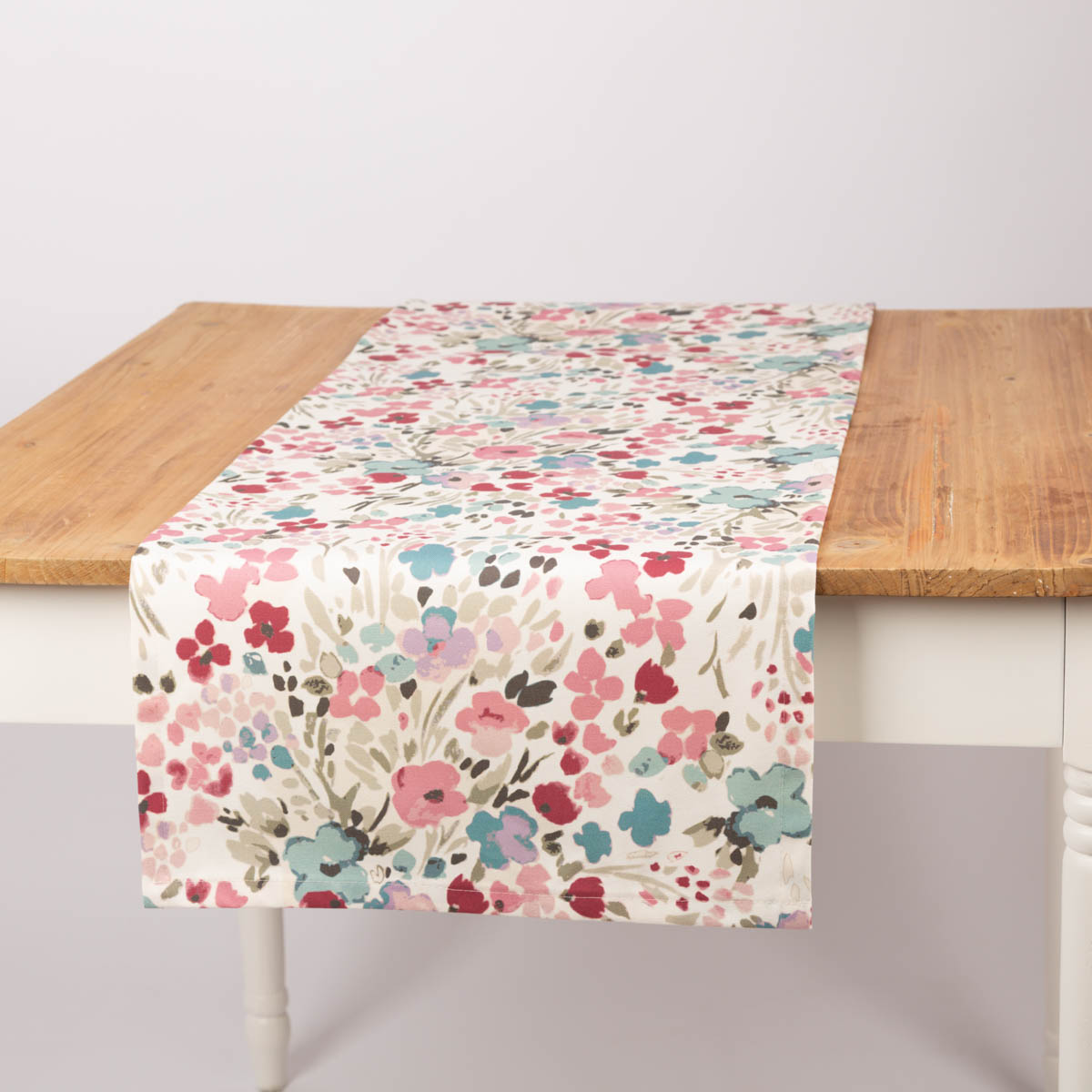 Hochwertiger Tischläufer aus reiner Baumwolle mit Aquarell-Blüten-Digitaldruck