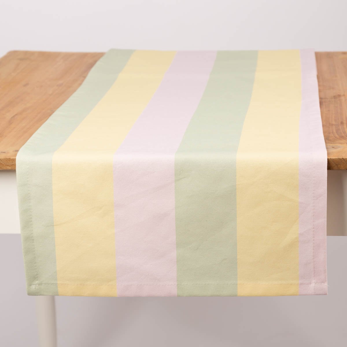 Tischläufer aus Baumwolle mit Streifen in Flieder, Vanille und Pistazie (40x160cm) – handgefertigt in Deutschland, Teil der SCHÖNER LEBEN. Kollektion