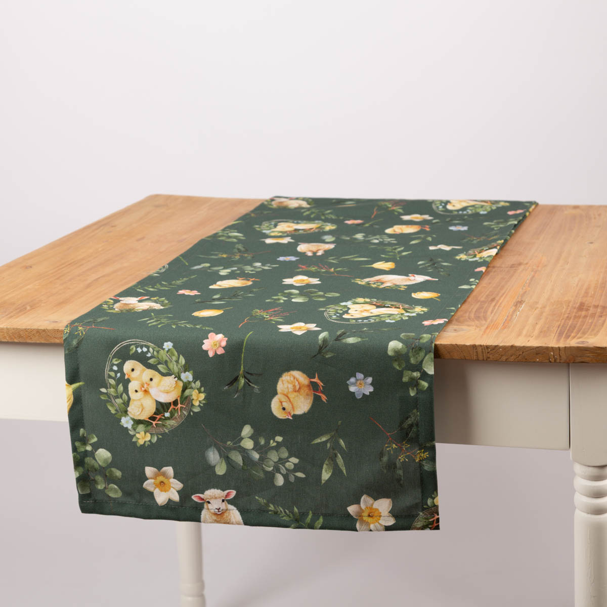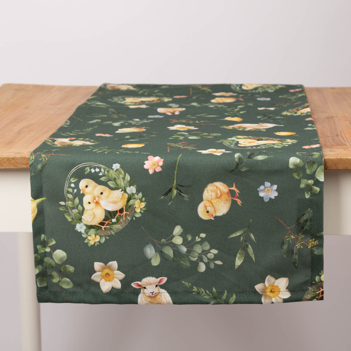 Tischläufer aus Baumwolle Ostern Bohemian Easter Mood Küken Lamm grün 40x160cm von SCHÖNER LEBEN.