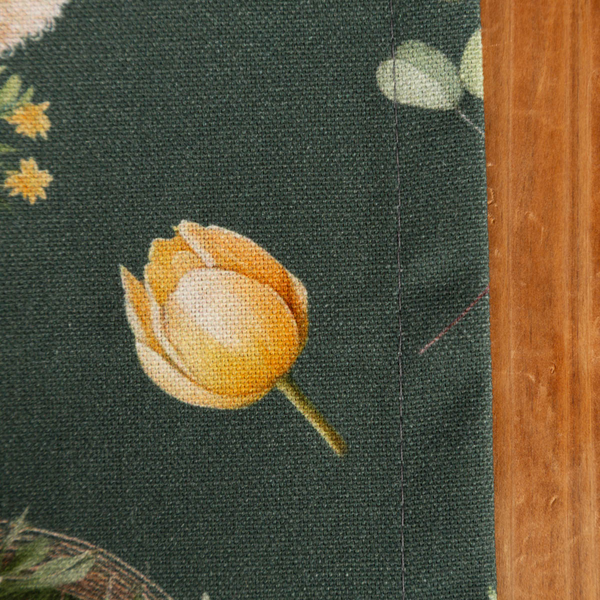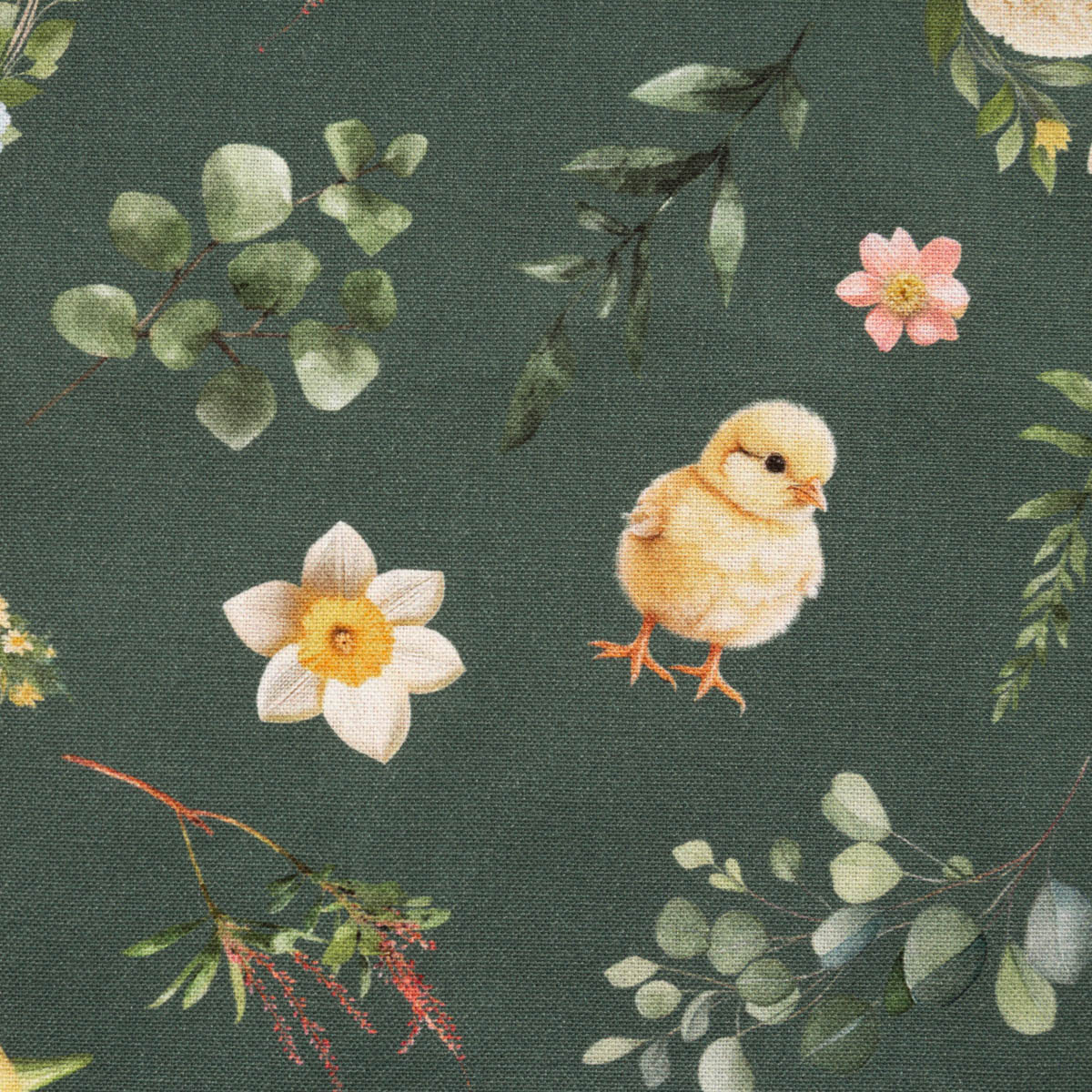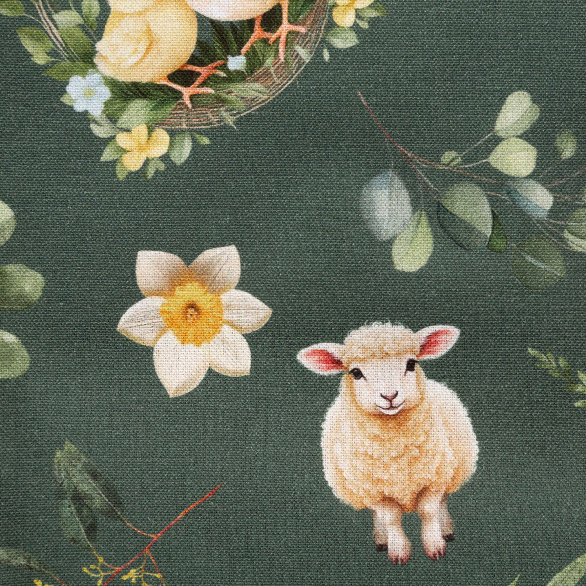 Der Tischläufer Bohemian Easter Mood bringt mit seinem detailreichen Osterdessin frische Frühlingsstimmung in dein Zuhause. Lämmer, Küken, Blumen und feine Blätter entfalten sich harmonisch auf einem tiefgrünen Hintergrund. Das Design wirkt modern, zeitlos und zugleich verspielt – perfekt für eine stilvolle Osterdekoration.