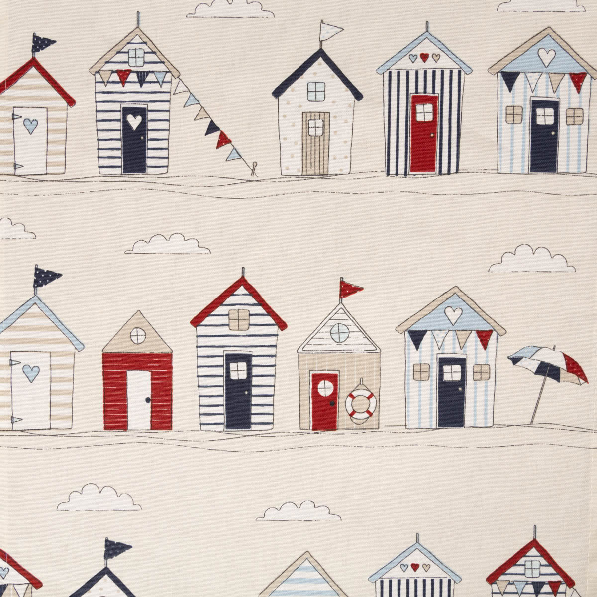 Strandhäuschen-Print: Das einzigartige Dessin mit liebevoll gezeichneten Beach Huts setzt maritime Akzente auf deinem Tisch.