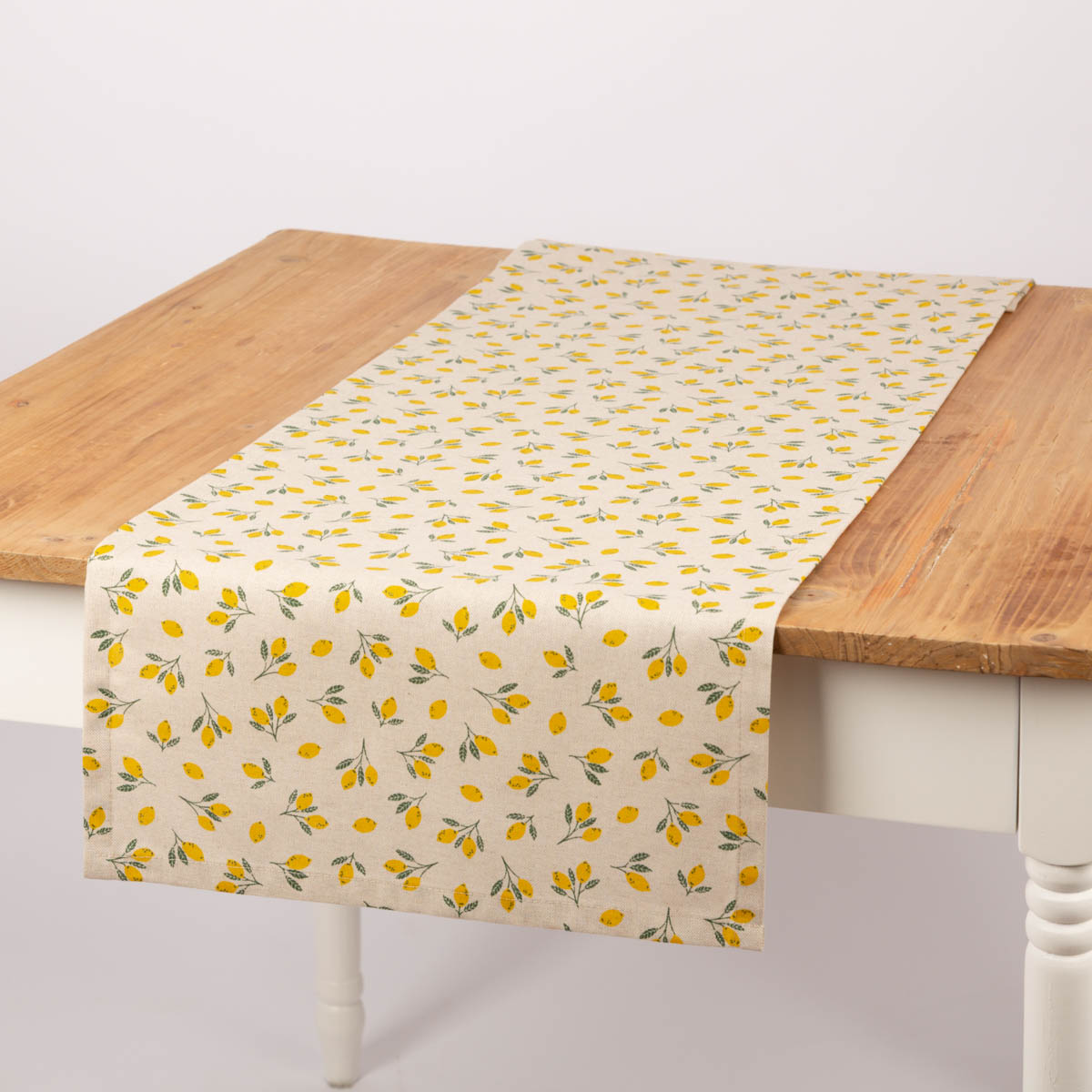 Frischer Tischläufer im Leinenlook mit Zitronen-Motiv in Gelb