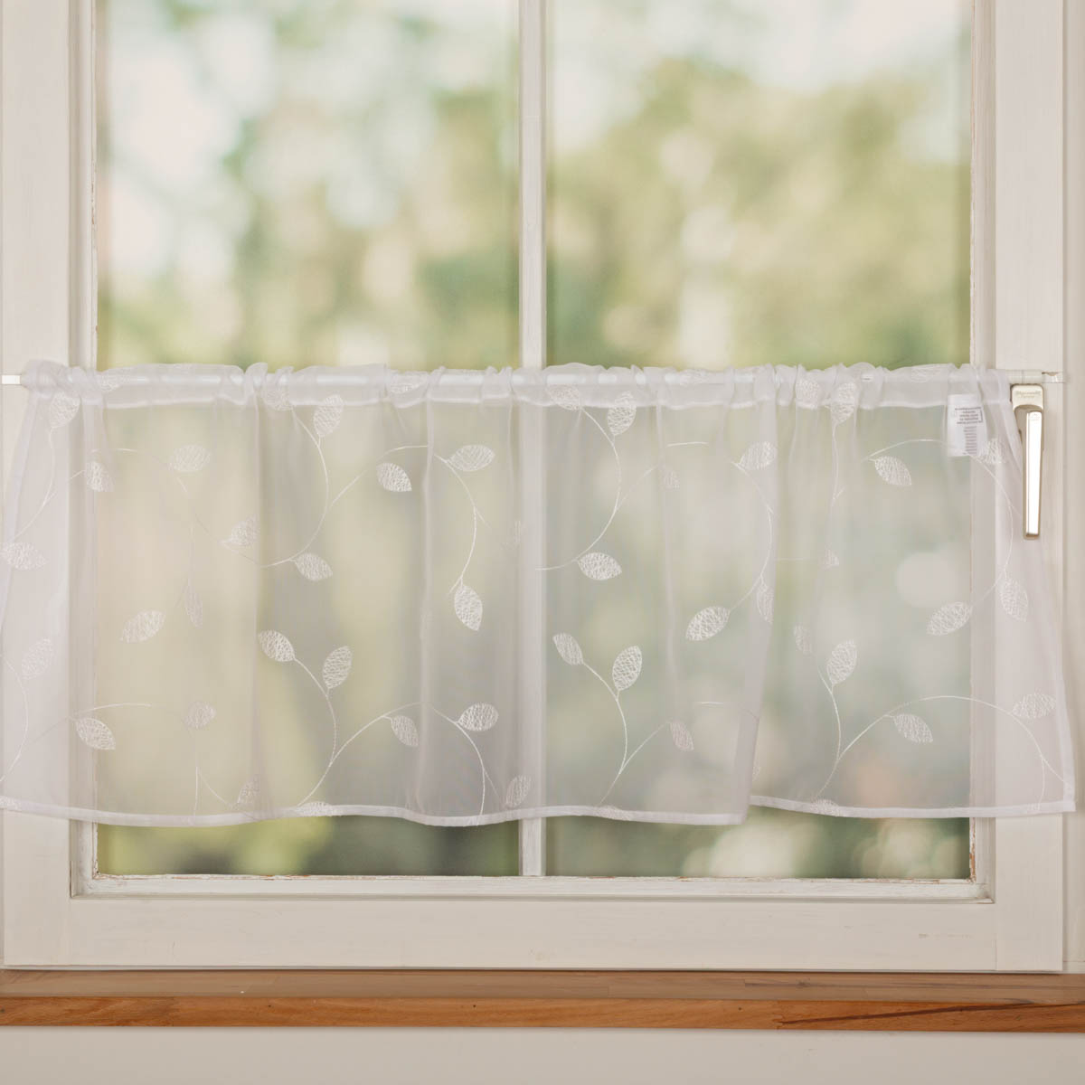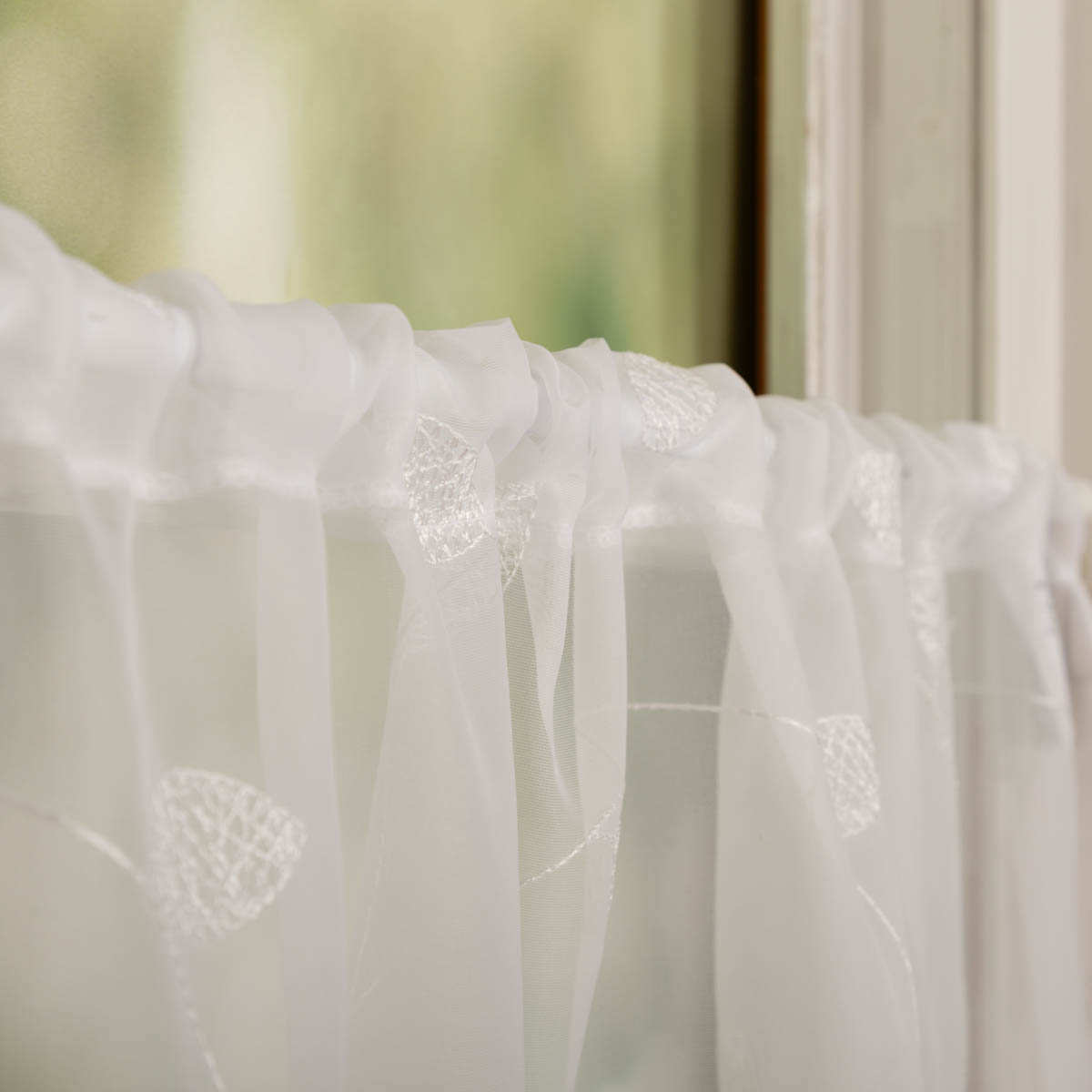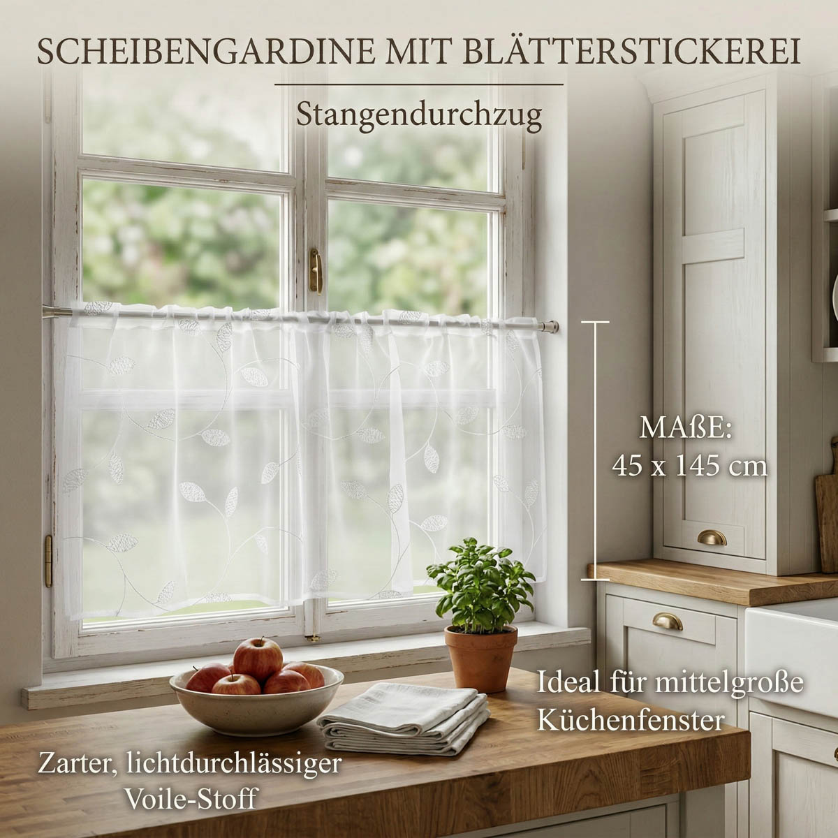 Frische Leichtigkeit am Fenster – Scheibengardine mit Blätterstickerei in Weiß