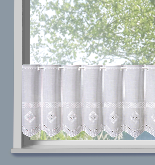 Scheibengardine Stickerei Raute weiß nähfrei kürzbar 45 x 145 cm