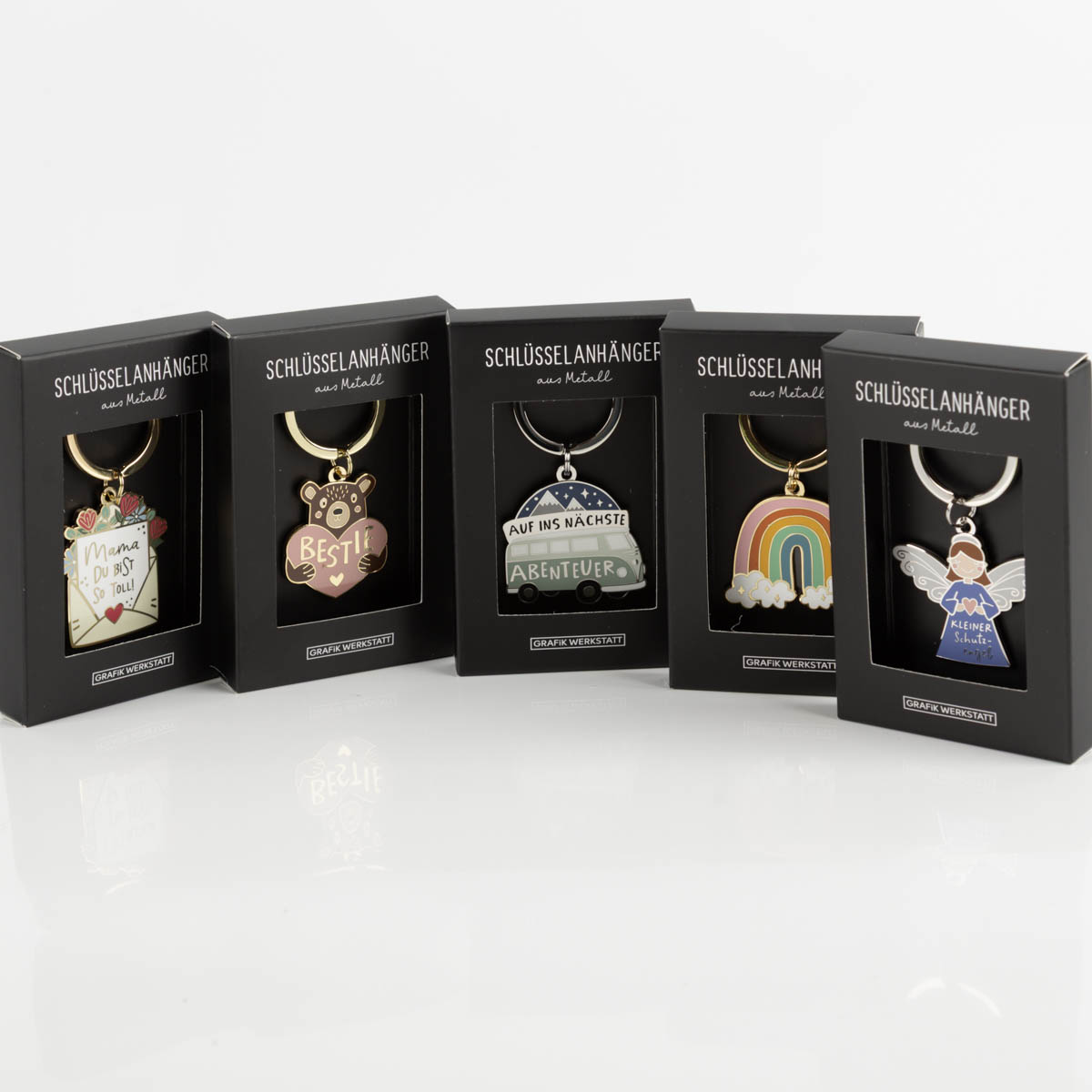 • Hochwertiger Metall-Schlüsselanhänger mit farbenfrohem Regenbogen-Motiv
