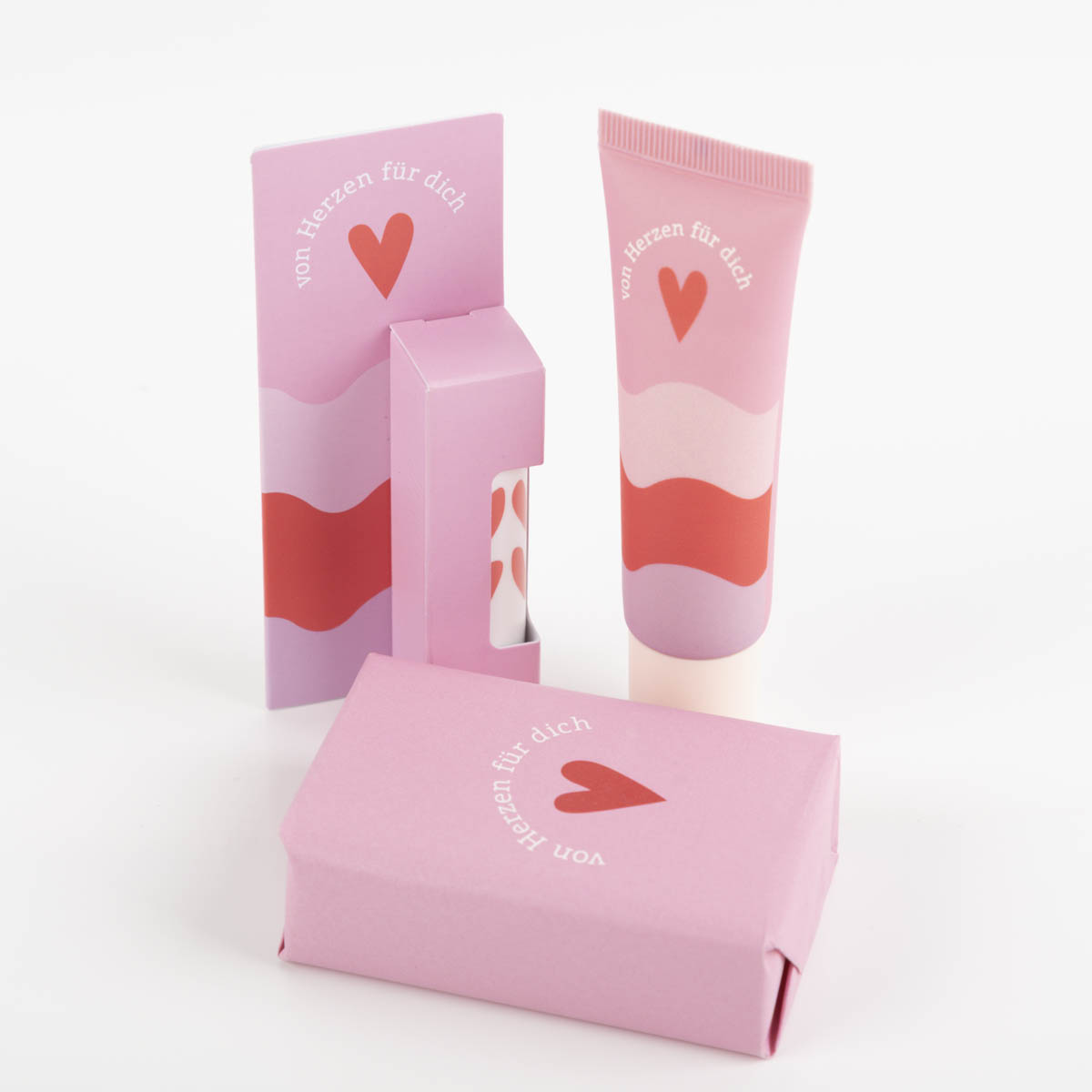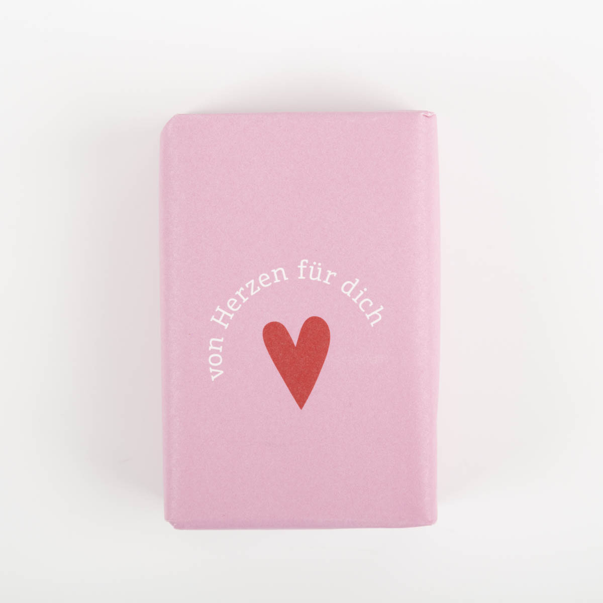 Verpackung: Hochwertiger Papiereinschlag mit Aufschrift „von Herzen für dich“