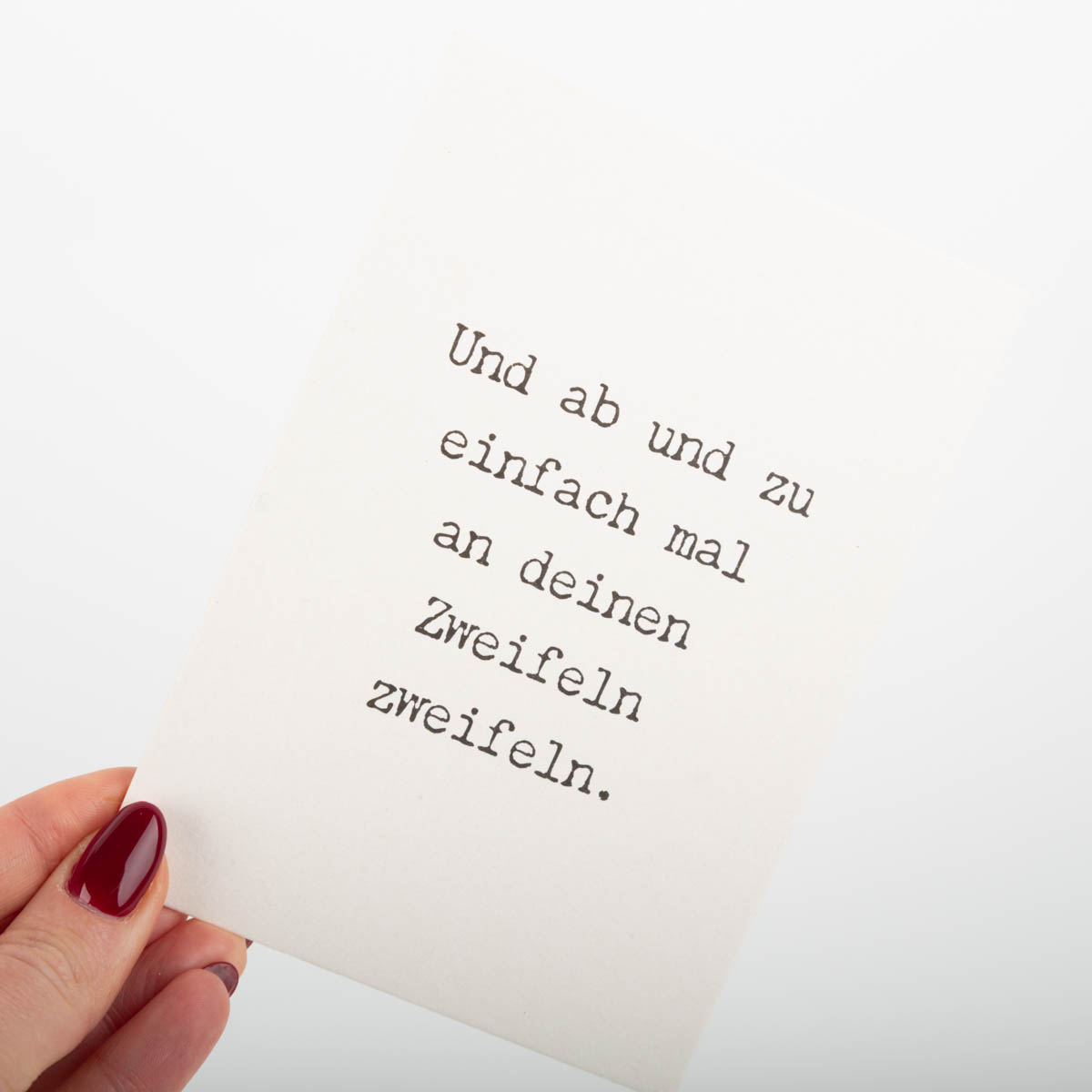 • Aufschrift: Und ab und zu einfach mal an deinen Zweifeln zweifeln