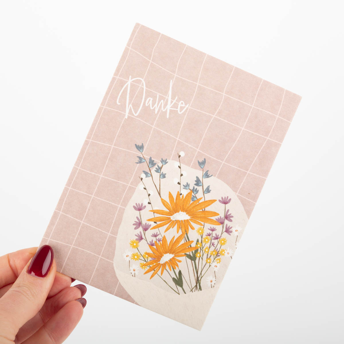Postkarte Danke Blumenstrauß aus Pappe A6 von KEITCARDS