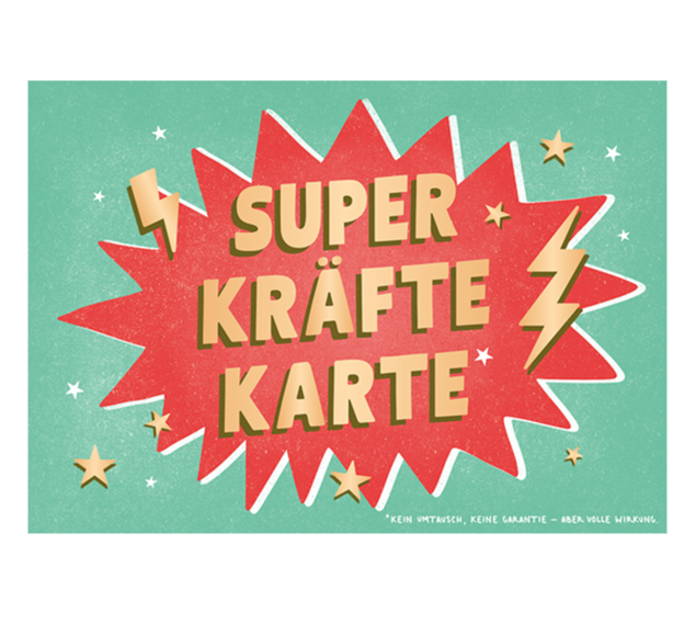 Postkarte „SUPERKRÄFTEKARTE“ – mit Goldveredelung von Grafik Werkstatt