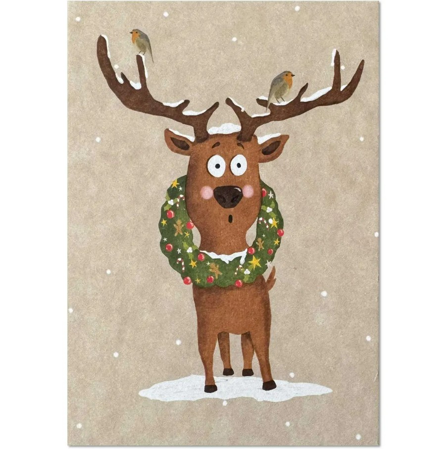Postkarte Weihnachtselch mit Adventskranz aus Pappe A6 von KEITCARDS
