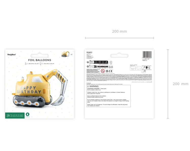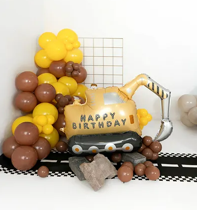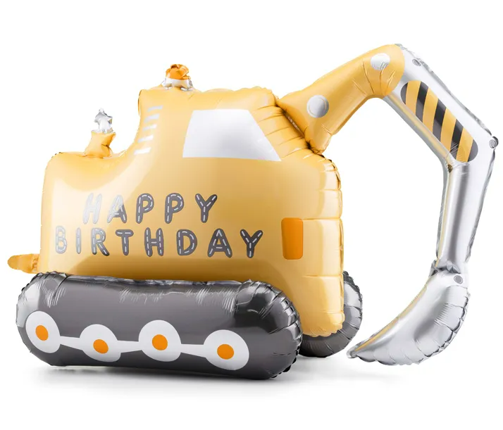 Dieser gelbe Bagger als stehender Folienballon ist das perfekte Highlight für kleine Baustellen-Fans. Mit seinem großen Schaufelarm, dem „Happy Birthday“-Schriftzug und seiner stabilen Standform sorgt er für Begeisterung auf jedem Kindergeburtstag und bei jeder Baustellen-Mottoparty.