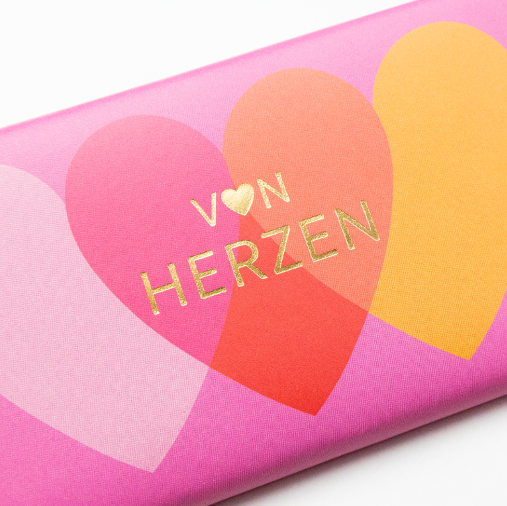 Mini-Schokotafel "von Herzen" pink goldveredelt 30g von Grafik Werkstatt