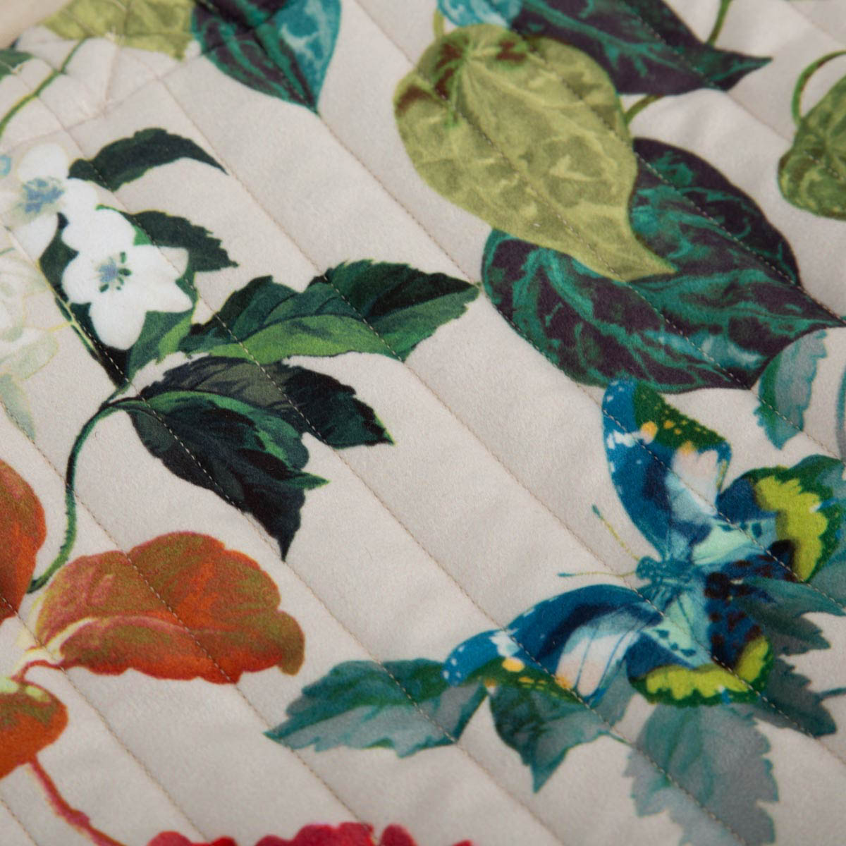 • Außenmaterial: gestepptes Samtgewebe mit Blumenprint