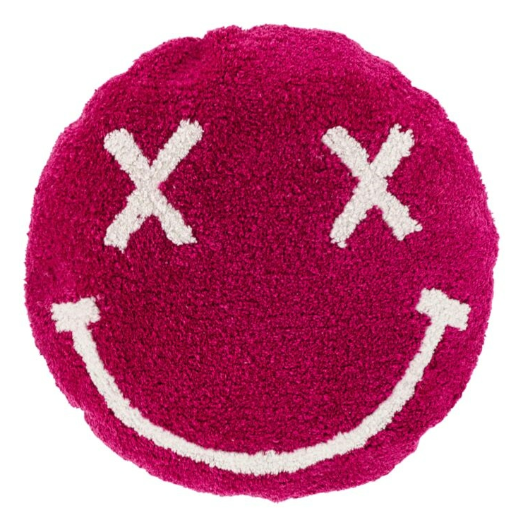 CHARMANTES DESIGN: Das runde Kissen begeistert mit einem getufteten Smile-Gesicht in Pink und Weiß, das sofort für eine positive Ausstrahlung in jedem Raum sorgt.