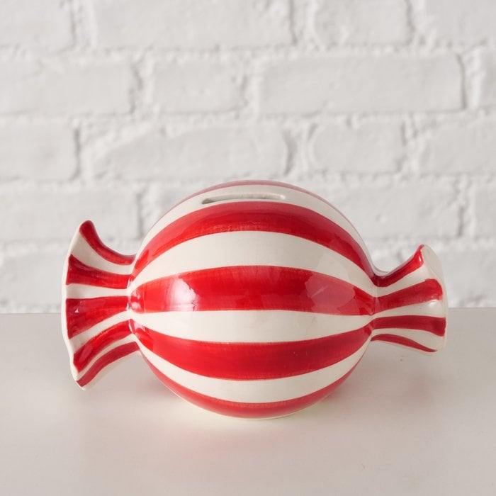 Spardose „Bonbon“ rot-weiß aus Keramik, handgearbeitet – 10×11×16 cm von Boltze