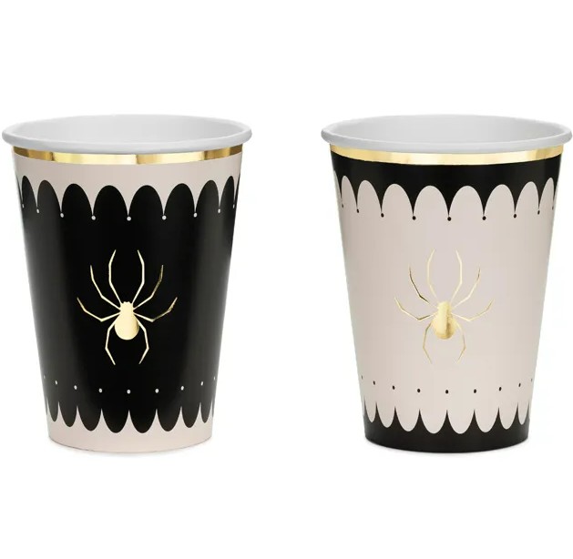 Pappbecher Spinne schwarz beige gold 400ml – 6 Stück Partybecher