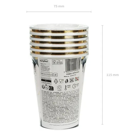 Die Becher fassen 400 ml und eignen sich für kalte und warme Getränke. Hergestellt aus stabilem, lebensmittelechtem Karton, sind sie praktisch und zugleich ein echter Hingucker.