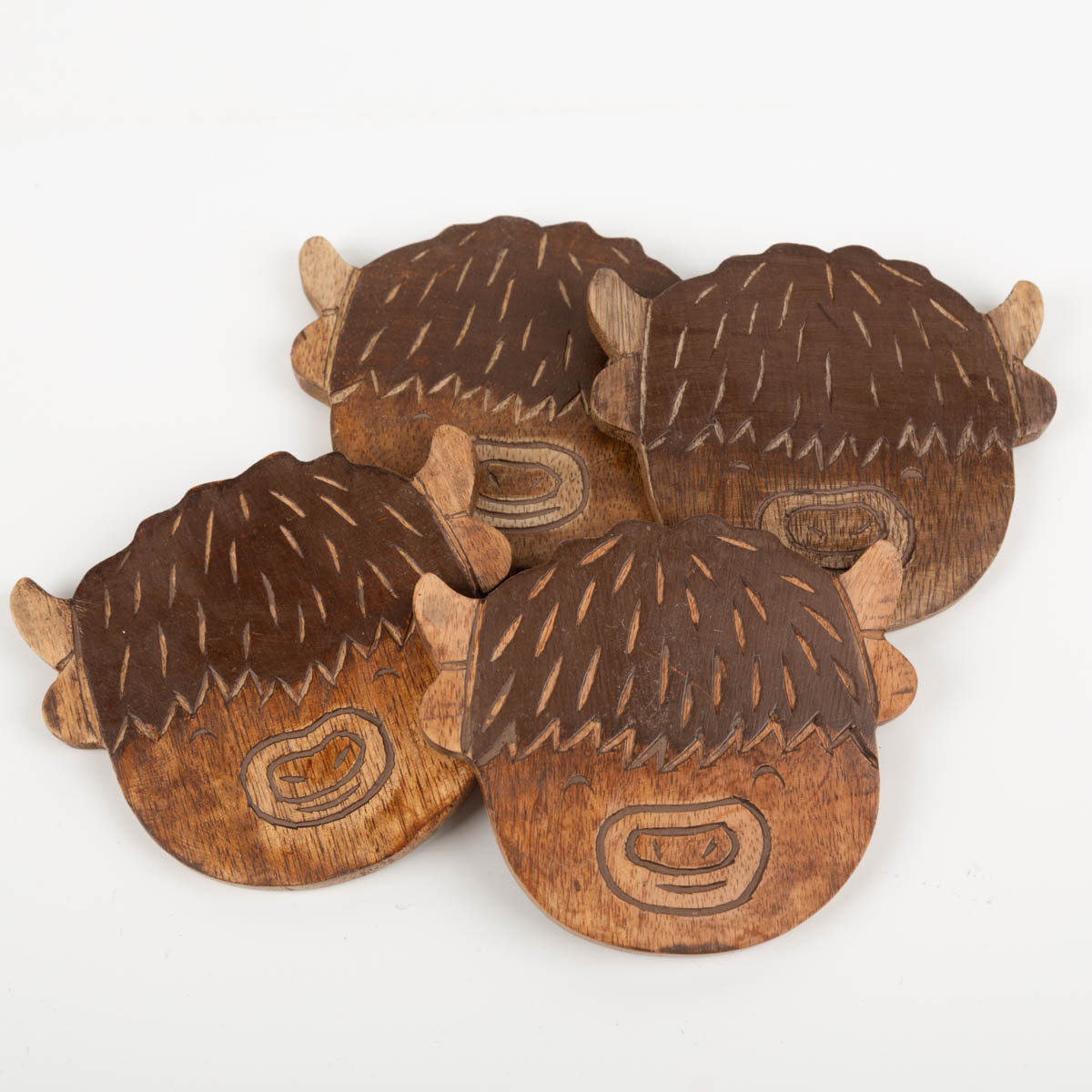 Glasuntersetzer Highland Cow aus Mangoholz 4er Set von Sass & Belle