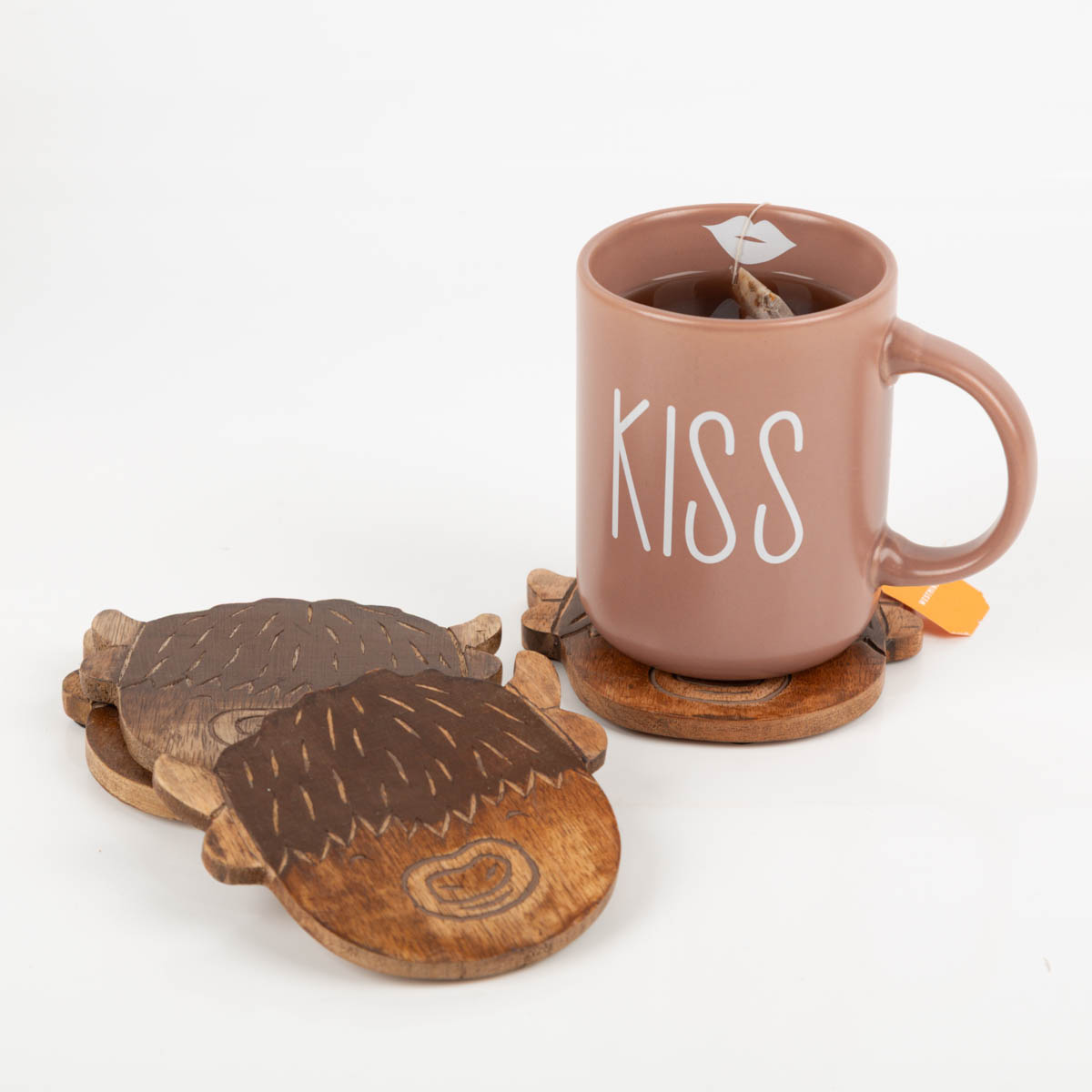 Glasuntersetzer „Highland Cow“ – 4er Set, Mangoholz, Sass & Belle