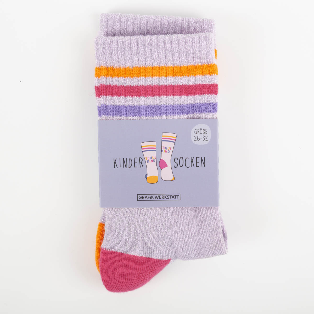 Kindersocken Schulkind Gr 26-32 mit Glitzergarn violett von Grafik Werkstatt