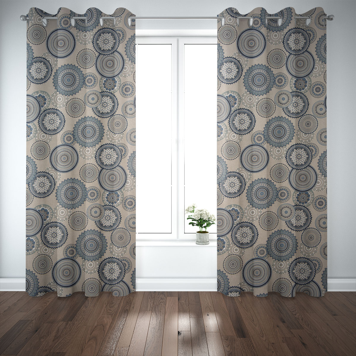 SCHÖNER LEBEN. Vorhang Mandalas natur blau 245cm oder Wunschlänge