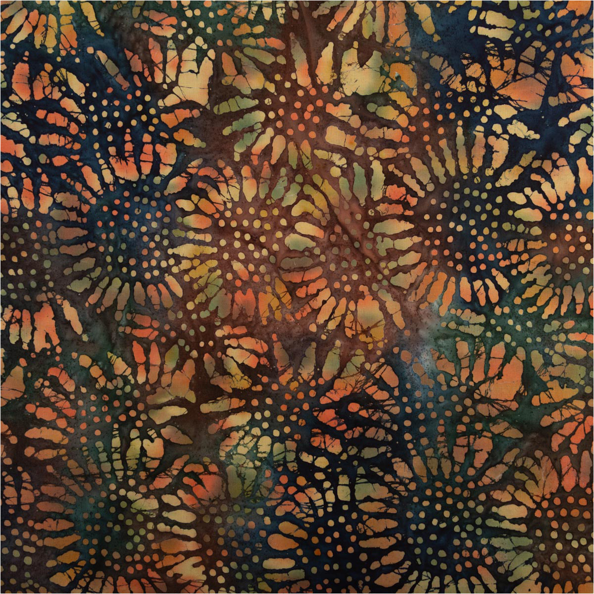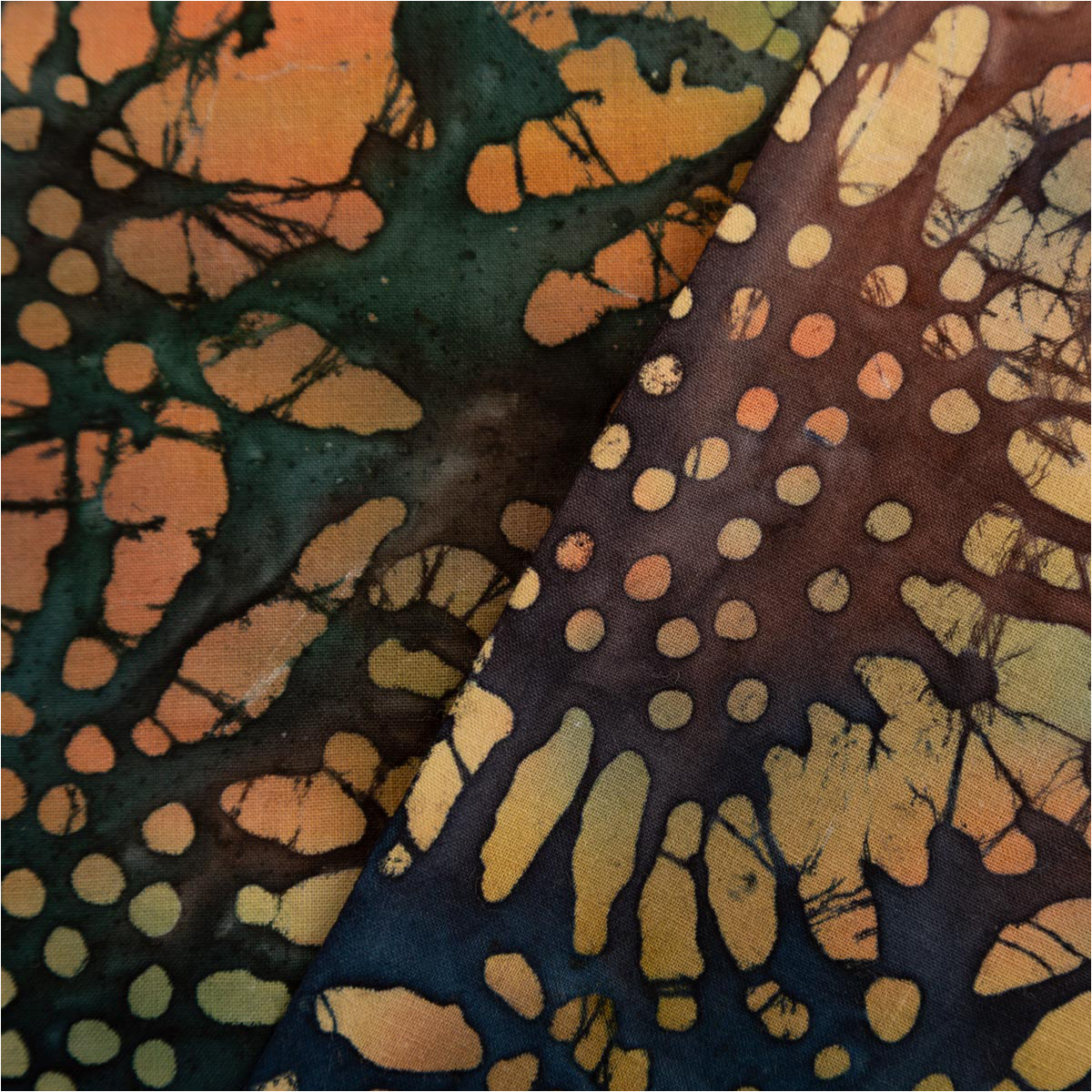 Baumwollstoff Unique Crafted Batik – Blumen-Dessin in Grün und Orange 1,37 m Breite, weich & luftig für Sommermode im Boho-Style