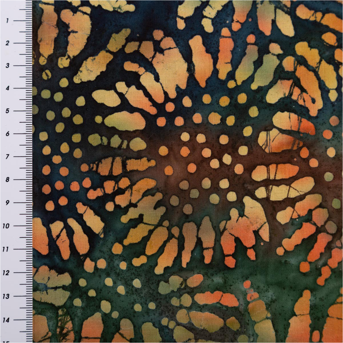 Baumwollstoff Unique Crafted Batik Cotton Blumen grün orange 1,37m Breite