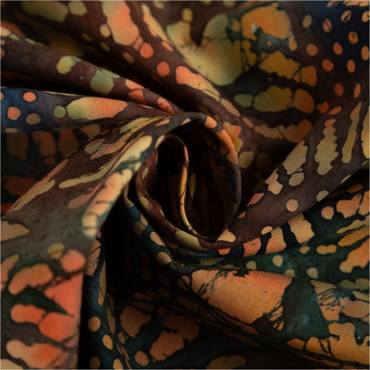 Der Batik-Baumwollstoff "Unique Crafted" mit Blumenmuster in Grün und Orange ist deine perfekte Wahl für kreative Sommerlooks mit natürlichem Flair. Ob lässige Kleidung oder wohnliche Accessoires – dieser Stoff bringt Leichtigkeit und Individualität in jedes Projekt.