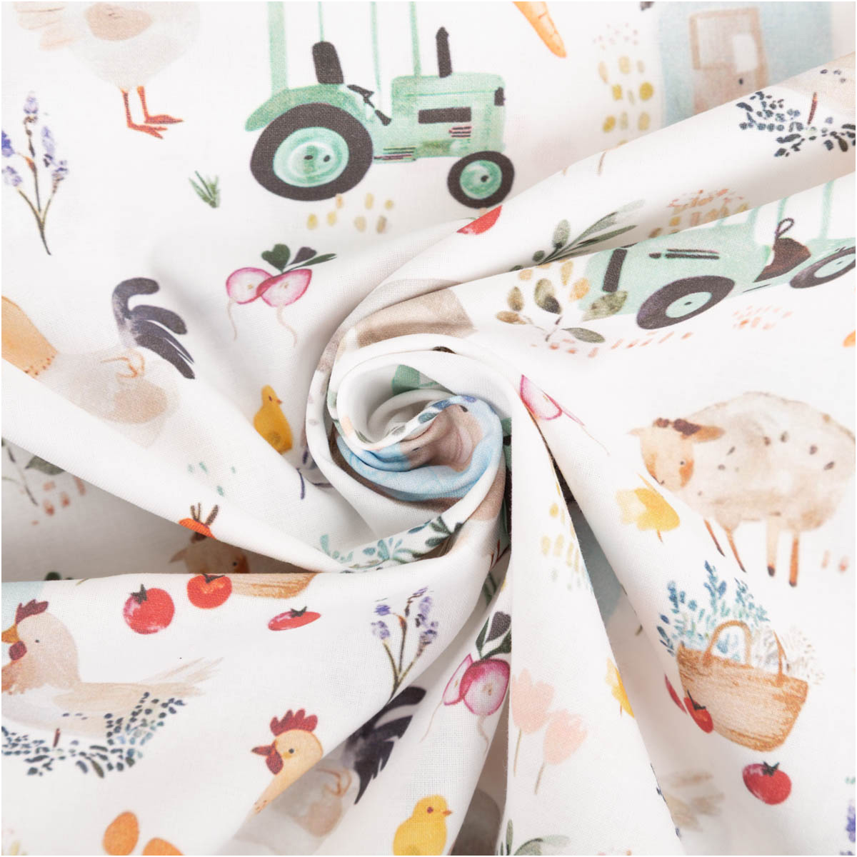 Baumwollstoff Popeline Bauernhof – Traktor, Tiere & Naturmotive