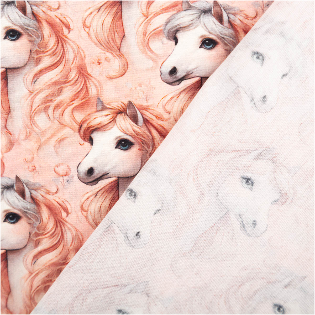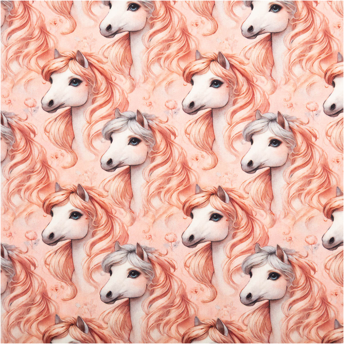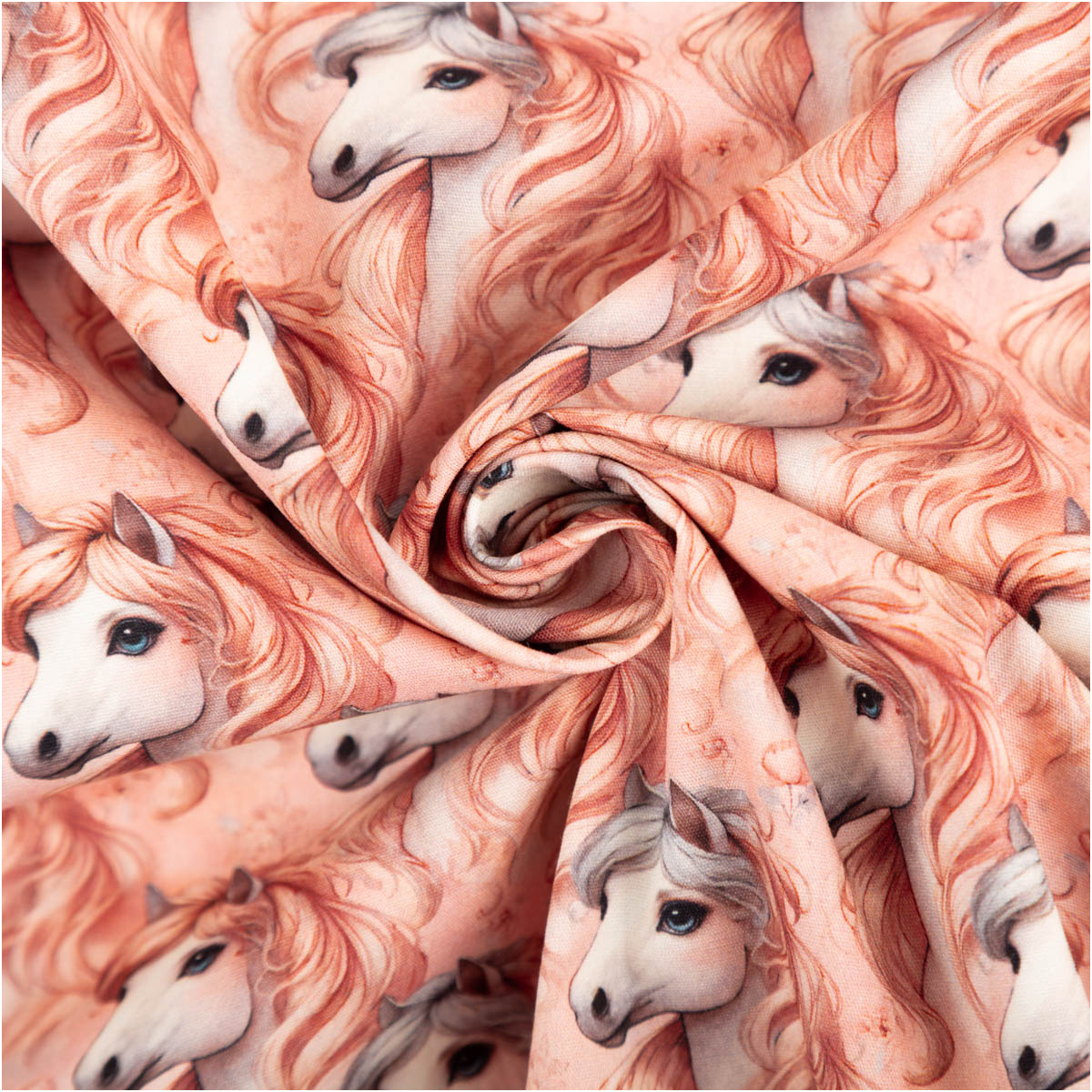 Zauberhafter Baumwollstoff Popeline mit Pferde-Digitaldruck in Rosa