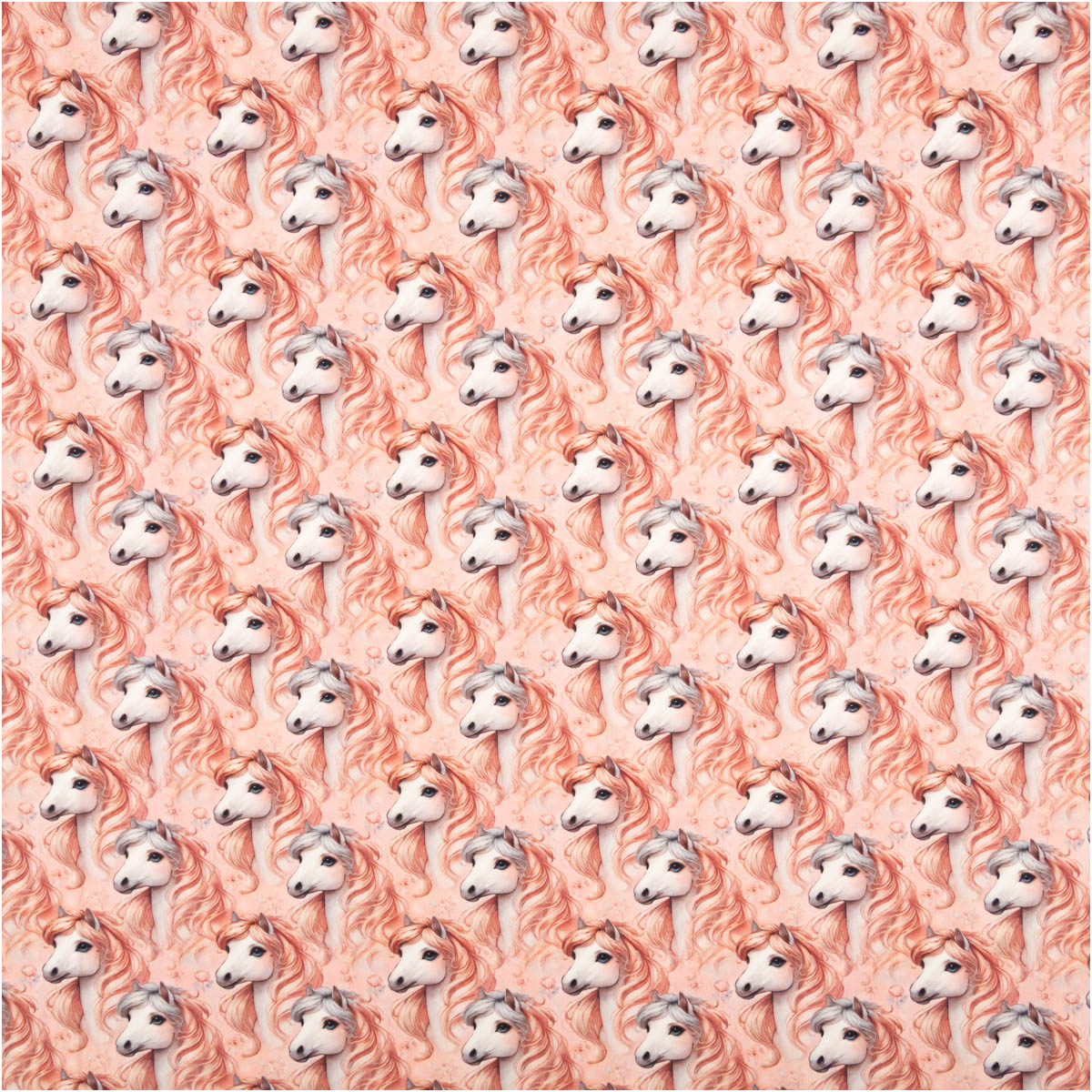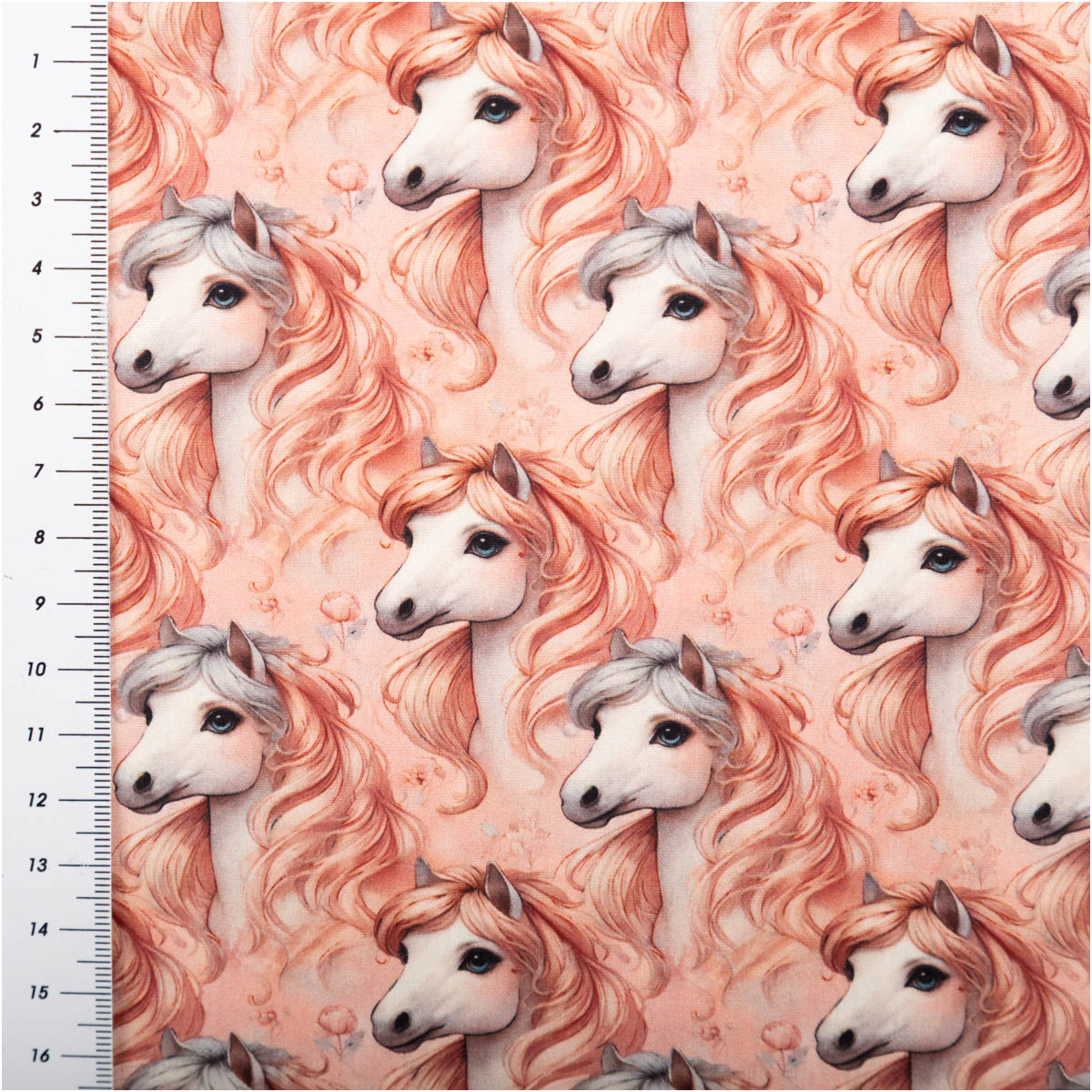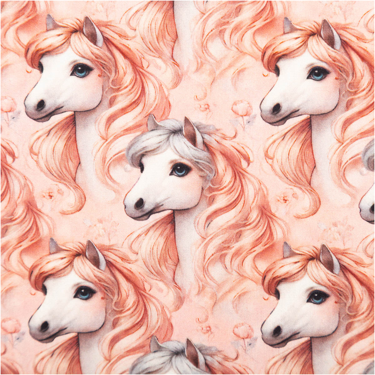 Zauberhafter Baumwollstoff Popeline mit Pferde-Digitaldruck in Rosa