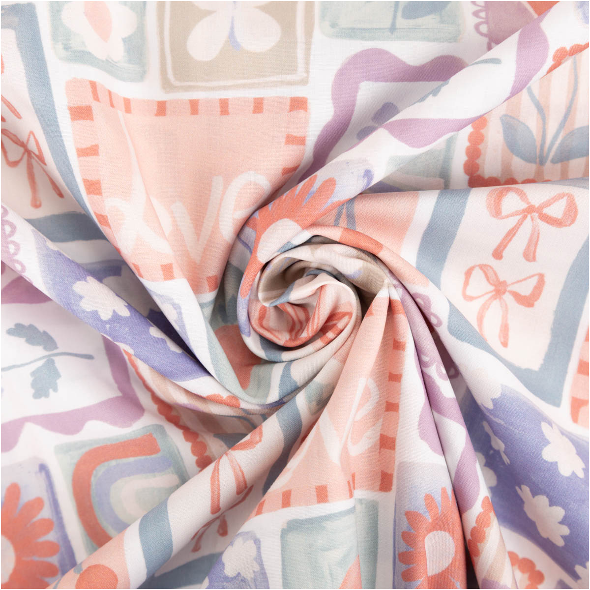 Du suchst einen Stoff, der zart aussieht, sich glatt anfühlt und sich sauber vernähen lässt? Diese Baumwollpopeline mit einem liebevollen Patchwork-Dessin aus kleinen Kacheln (u. a. Schleifen, Blumen, Kirschen und verspielte Motive in Pastell) ist perfekt für Projekte mit feinem, romantischem Look. Die klassische Popeline-Webart sorgt für eine glatte Oberfläche, einen schönen Fall und ein ordentliches Finish – ideal für Kleidung, Babyausstattung und kreative DIY-Ideen.