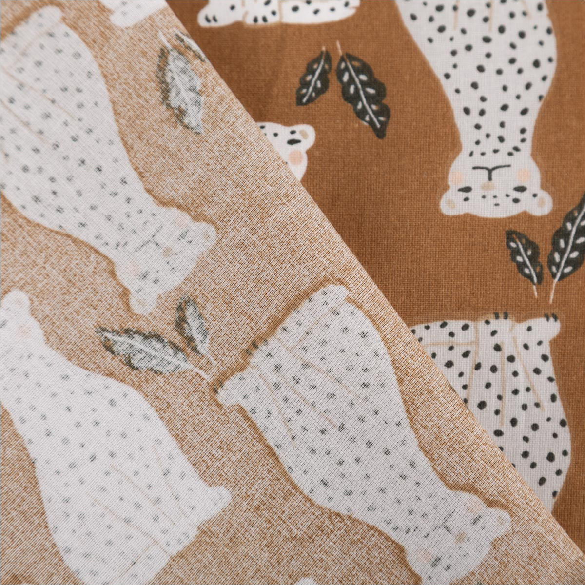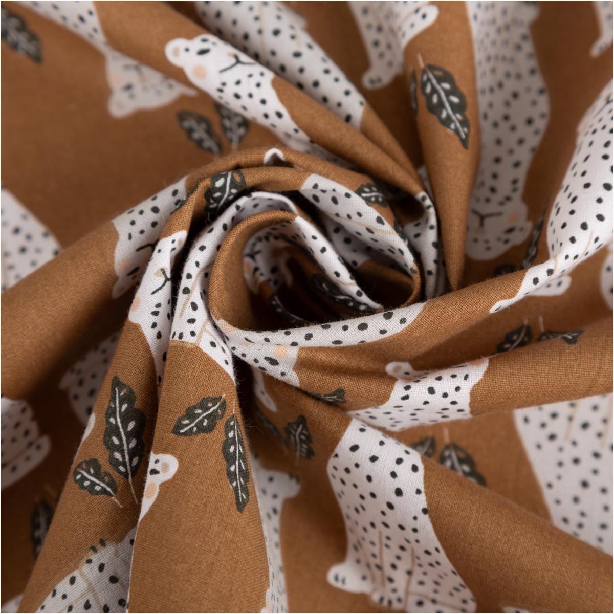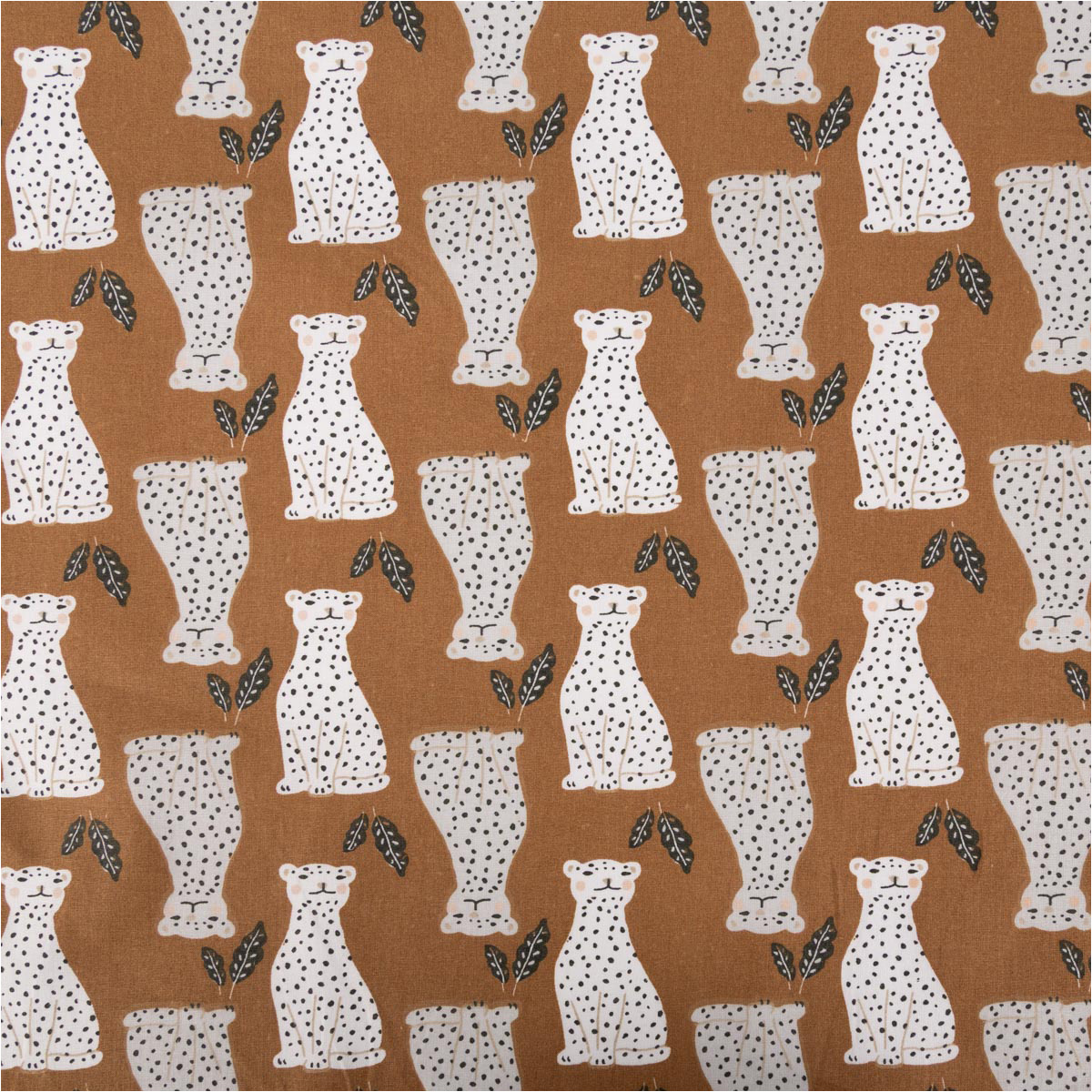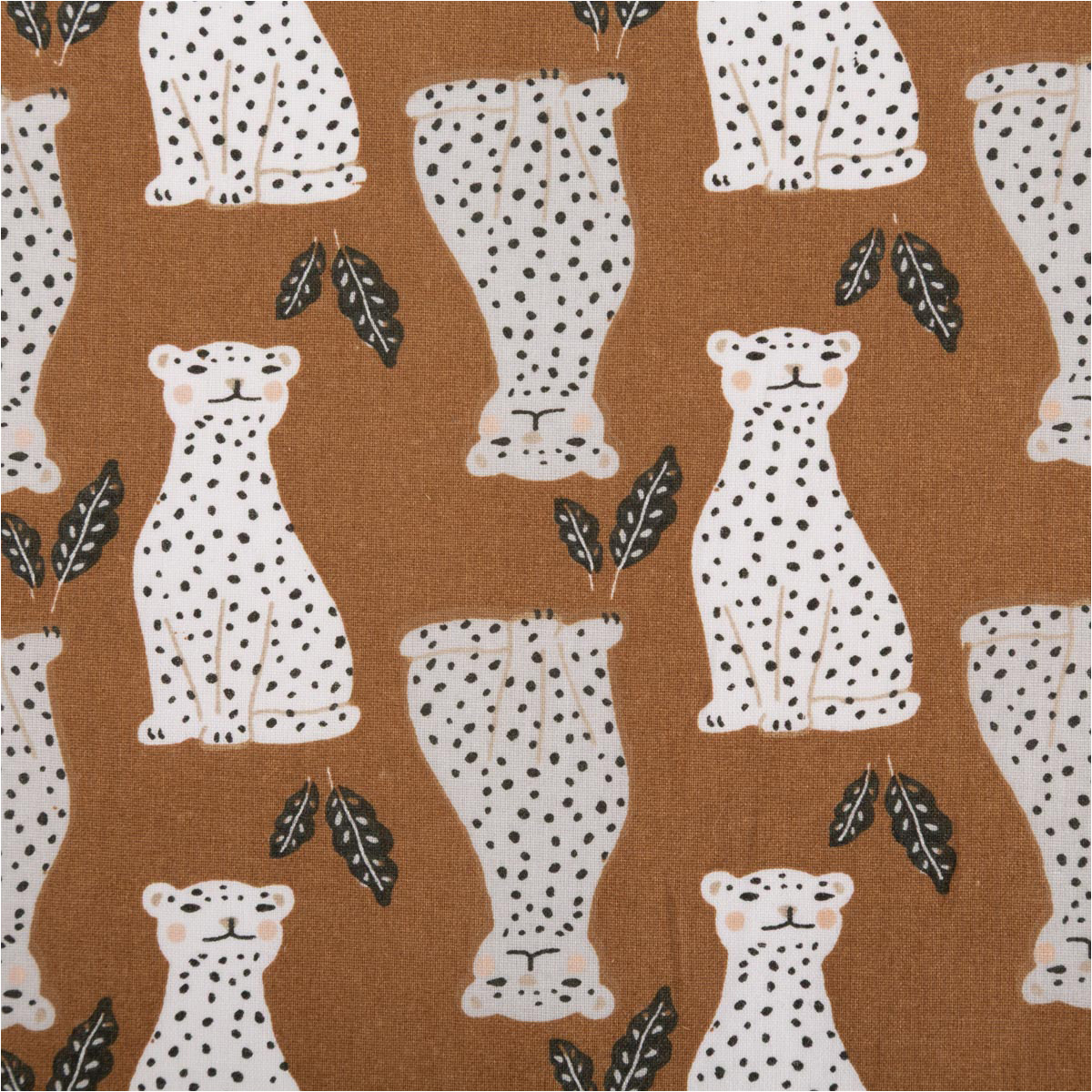 Exklusiver Baumwollstoff mit Leoparden-Print – Stylisches Design aus Frankreich in elegantem Braun, ideal für Mode, Deko & Kinderzimmer.
