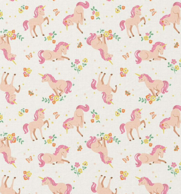 Baumwollstoff „Lilic“ mit Einhörnern und Blumen – zeitlos & verspielt