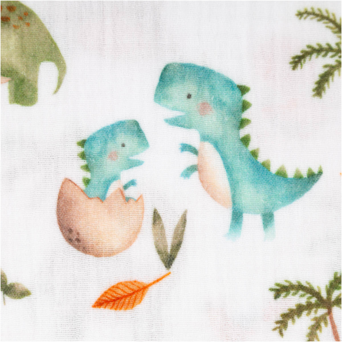 Musselin Stoff aus Baumwolle mit Dinosaurier-Digitaldruck in Weiß und Grün