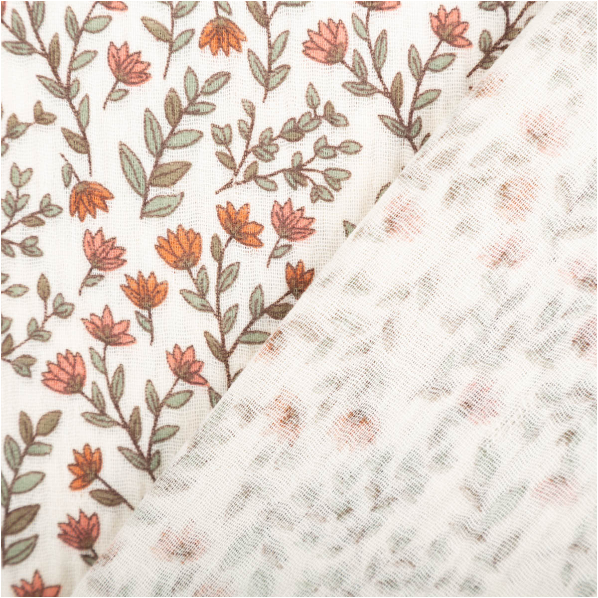 Musselin Stoff aus 100% Baumwolle mit Mini-Blumen- und Blätter-Dessin