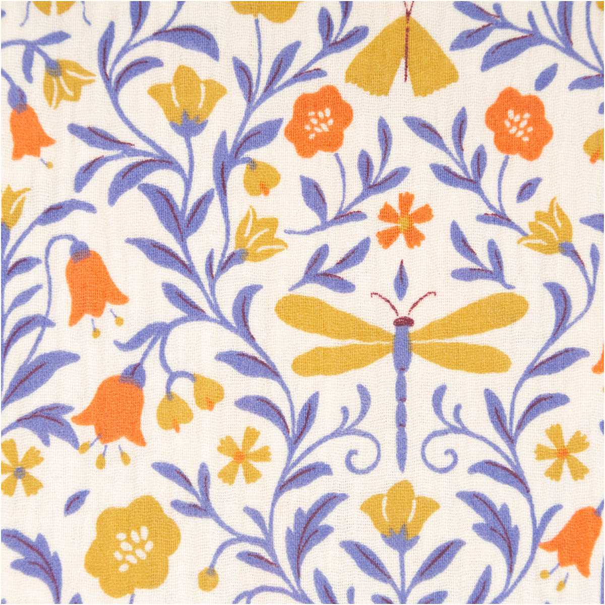 Dieser hochwertige Musselin Stoff aus 100 % Baumwolle überzeugt mit dem exklusiven französischen Dessin „Scarabee“. Feine Blumenranken, kleine Schmetterlinge und stilisierte Käfer verteilen sich harmonisch auf einem ecrufarbenen Grund. Die Kombination aus Blau-, Gelb- und warmen Naturtönen verleiht dem Stoff eine besondere, verspielte und zugleich elegante Ausstrahlung – ideal für Baby-, Kinder- und Wohlfühlprojekte mit einem Hauch Naturromantik.