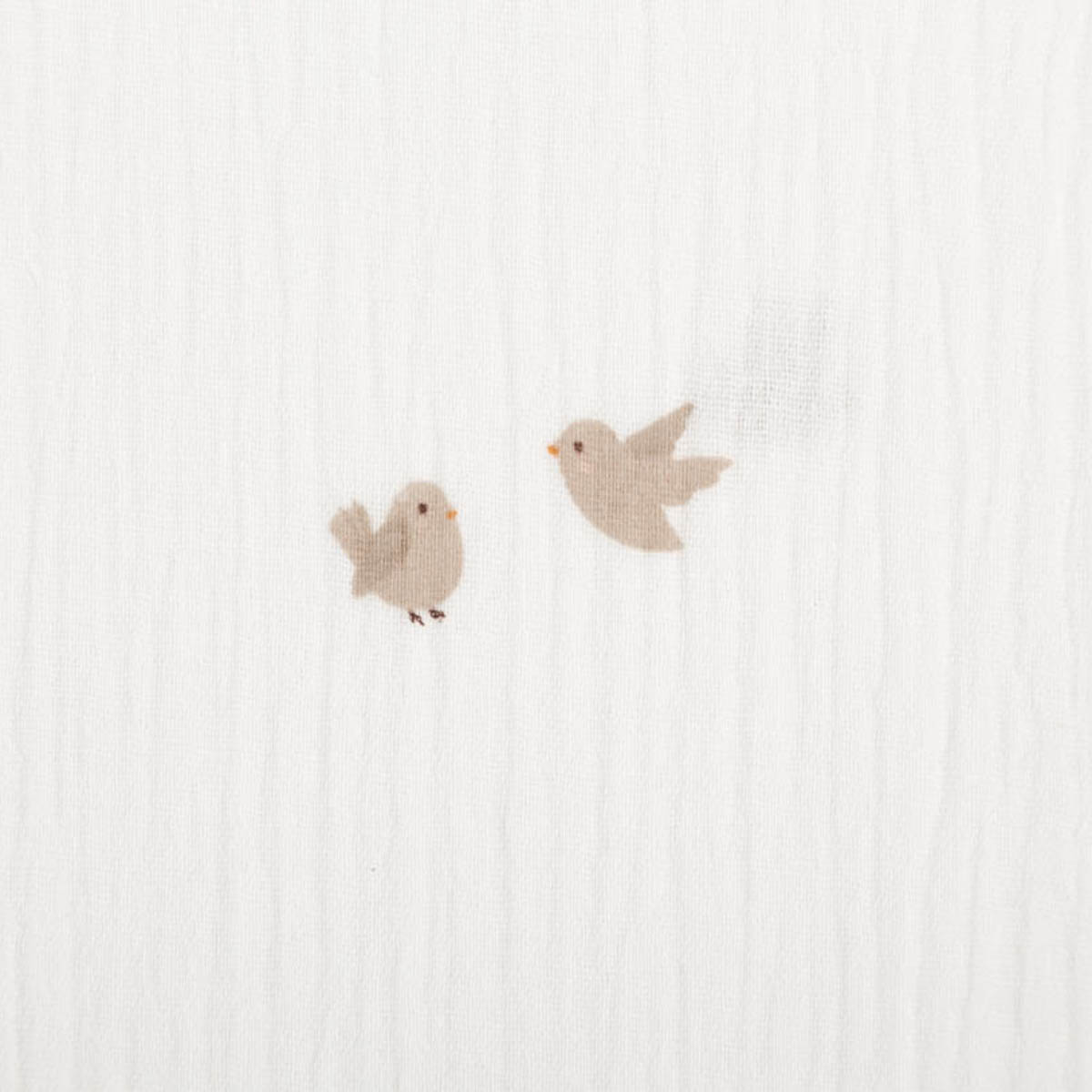 Weicher & luftiger Musselin Stoff: Der zweilagige Baumwollstoff mit niedlichem Vögel-Dessin ist besonders weich, saugfähig und atmungsaktiv – ideal für Kleidung, Babyausstattung und Heimtextilien.