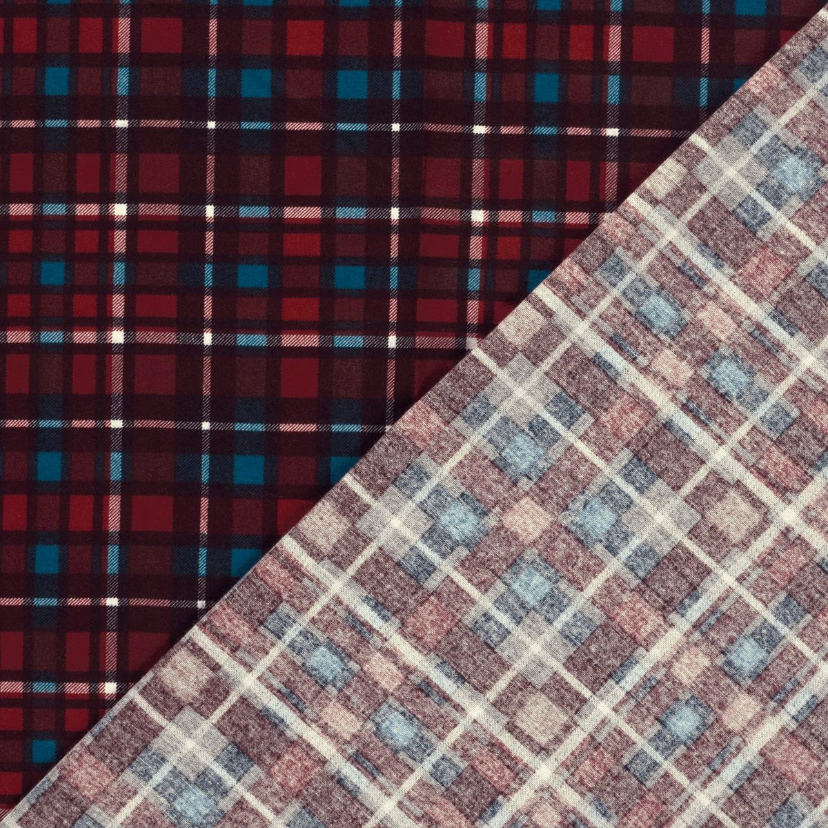 Dieser karierte Baumwollflanell verbindet eine angenehm weiche Oberfläche mit wohltuender Wärme. Durch den einseitig angerauten Flor fühlt sich die Vorderseite kuschelig weich an, während die Rückseite glatt bleibt – ideal für Kleidung und Heimtextilien, die dich durch Herbst und Winter begleiten.