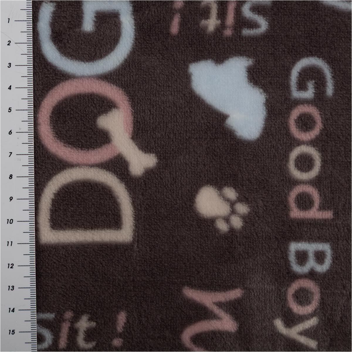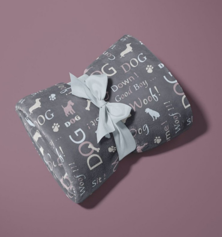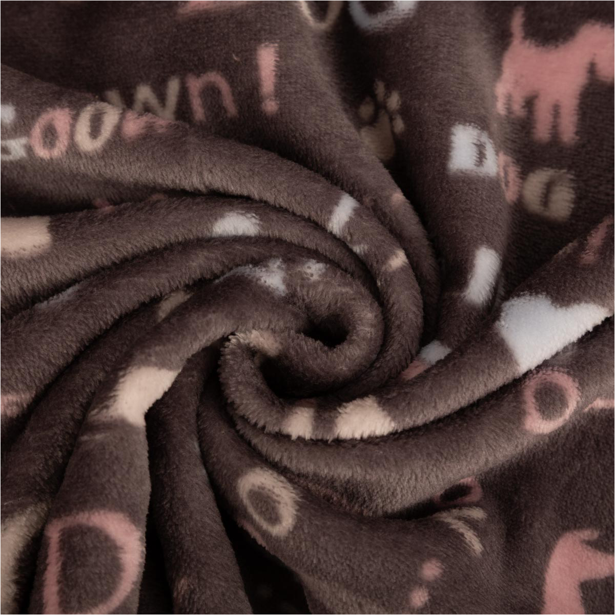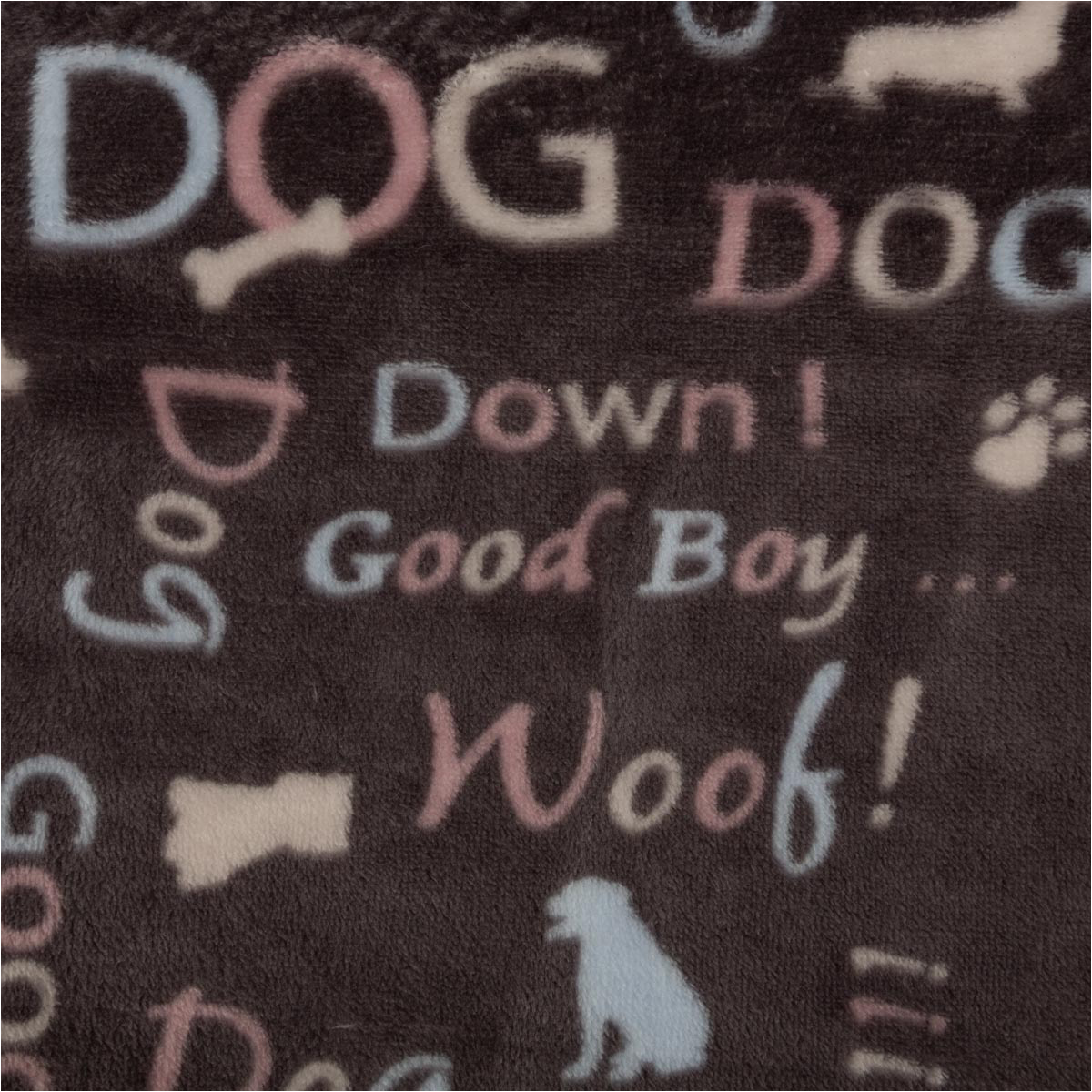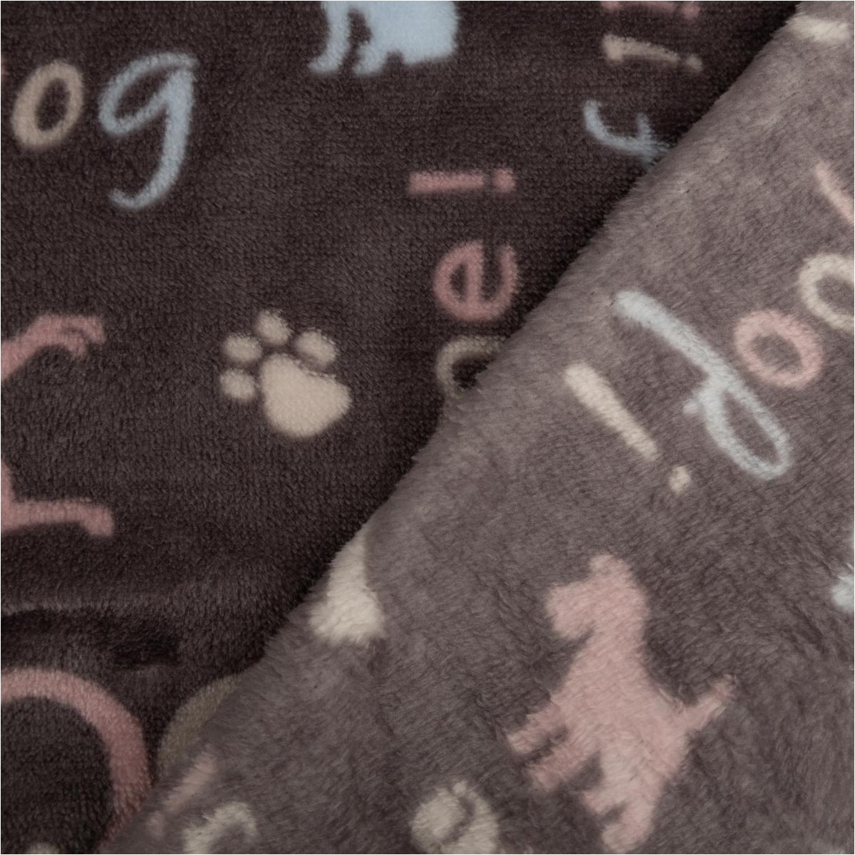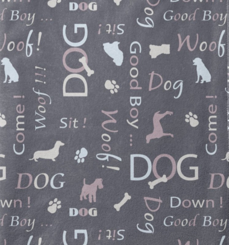 Kuschelweicher Fleecestoff mit Hunde-Motiven in Grau, Rosa und Blau