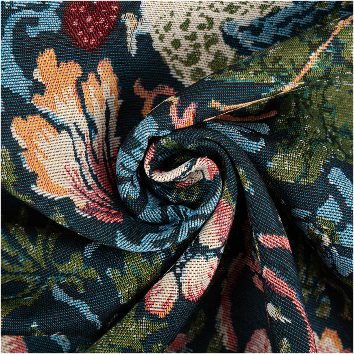 Dieser hochwertige Gobelin Stoff begeistert mit einem kunstvollen Design aus Vögeln, Blumen und Ranken auf dunklem Hintergrund. Die detailreichen Motive wirken wie ein gewebtes Kunstwerk und verleihen deinem Zuhause eine besondere, elegante Ausstrahlung mit natürlichem Charme.