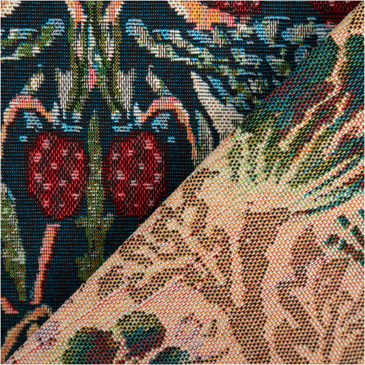 Die typische Gobelin-Webart macht diesen Stoff besonders robust und langlebig. Das Muster ist eingewebt und nicht aufgedruckt, wodurch eine leicht reliefartige Oberfläche entsteht. Dadurch erhält der Stoff seine charakteristische Struktur und eine edle Haptik.