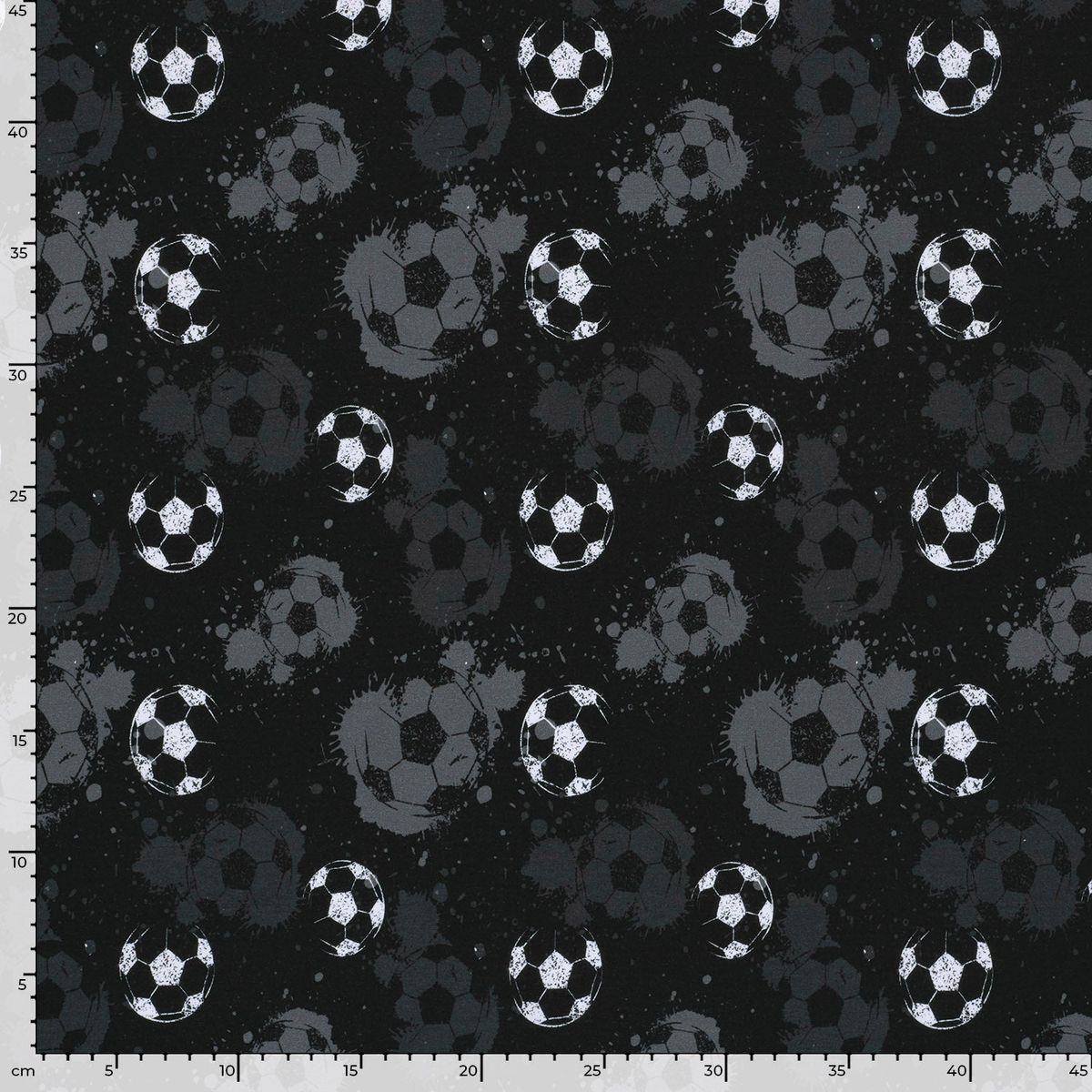 Fräulein von Julie Jersey Stoff Baumwolljersey Fußball Digitaldruck schwarz 1,50m Breite
