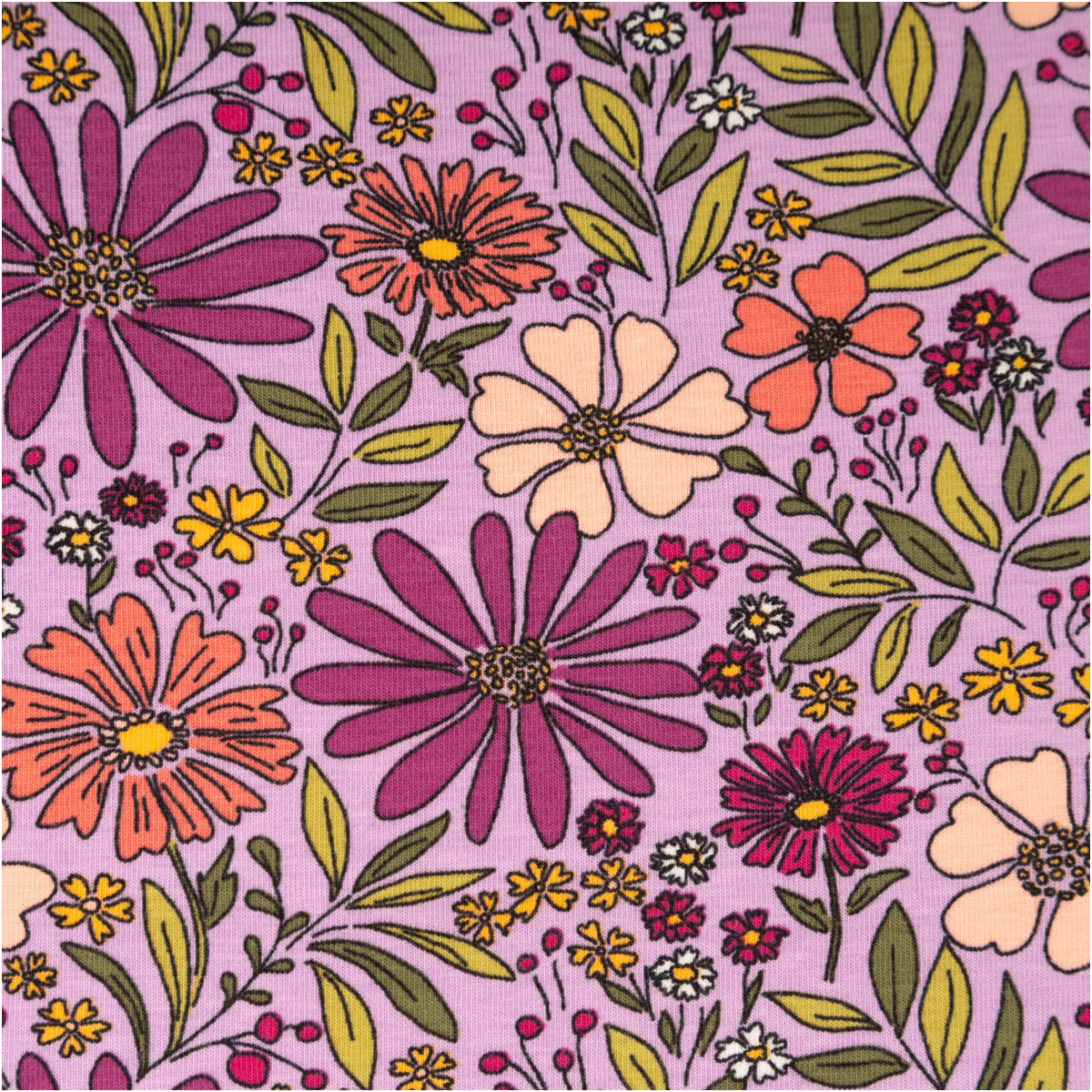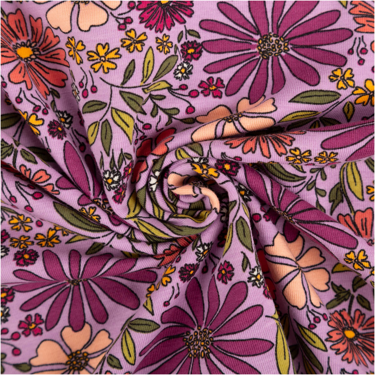 Jersey Stoff Baumwolljersey Blumen violett 1,48 m Breite