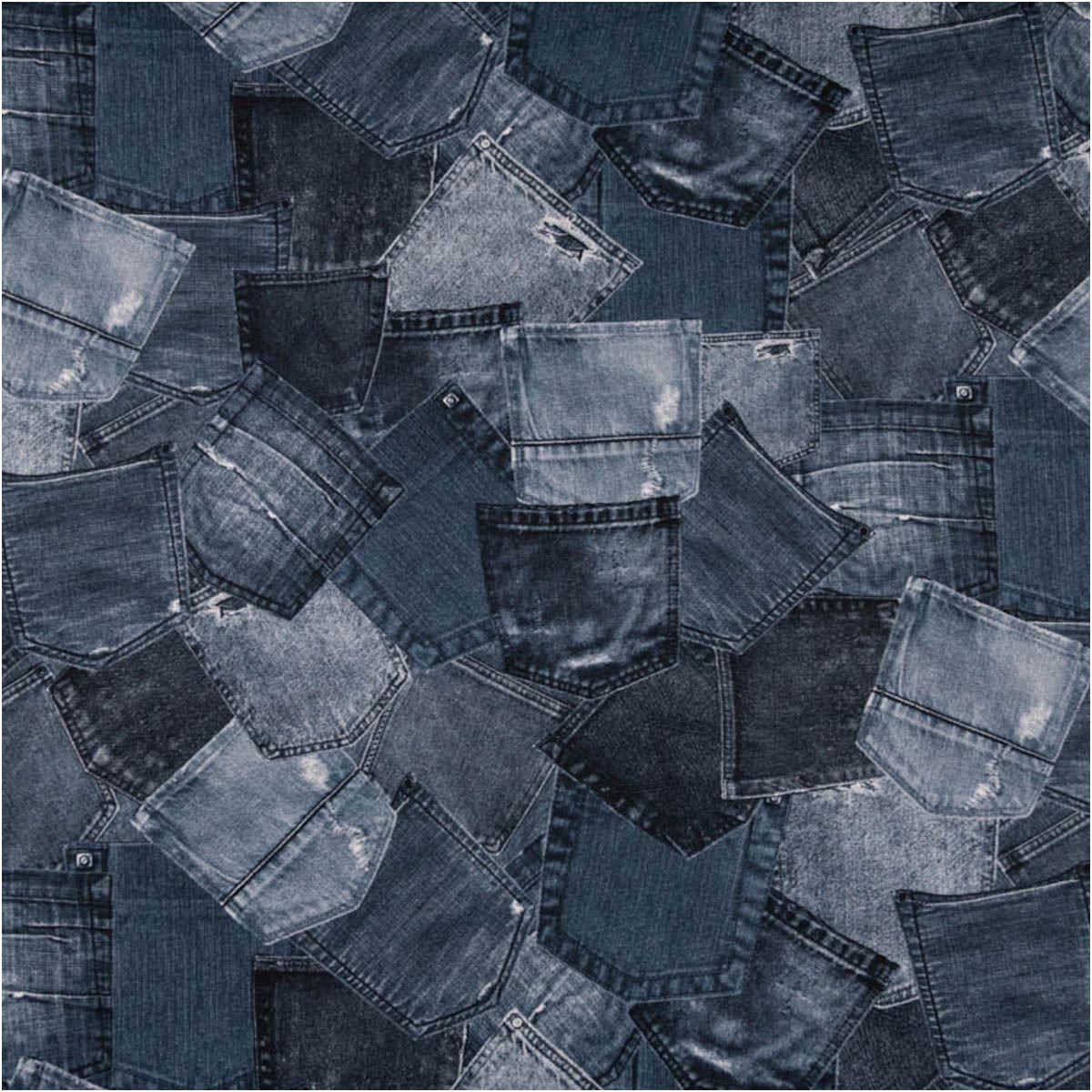 Jersey Stoff aus Baumwolle mit Digitaldruck Jeans Pockets dunkelblau – Weicher & elastischer Stoff für einzigartige Nähprojekte