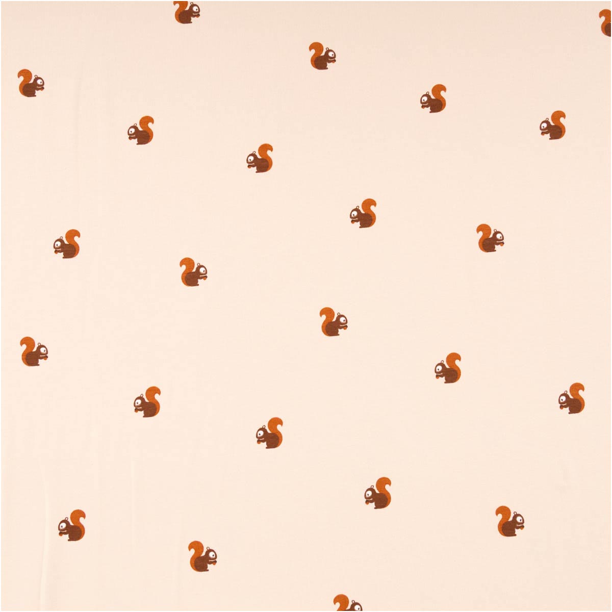 Jersey Stoff Baumwolljersey mit niedlichen Eichhörnchen – Weich, elastisch & hautfreundlich in Wollweiß und Braun (/1,50 m Breite)