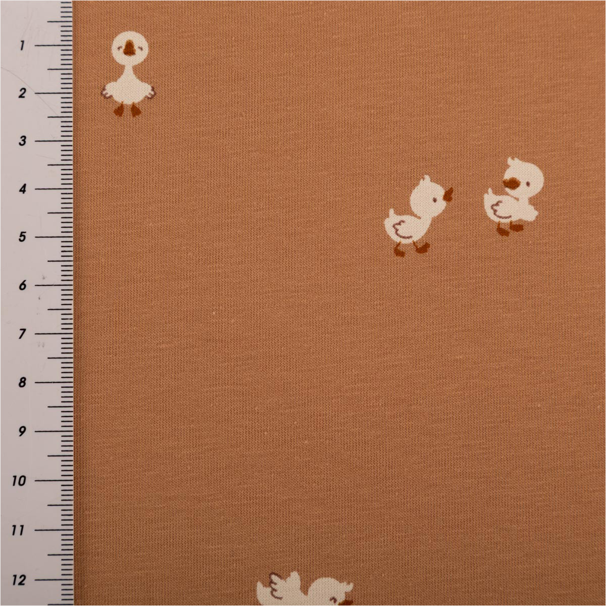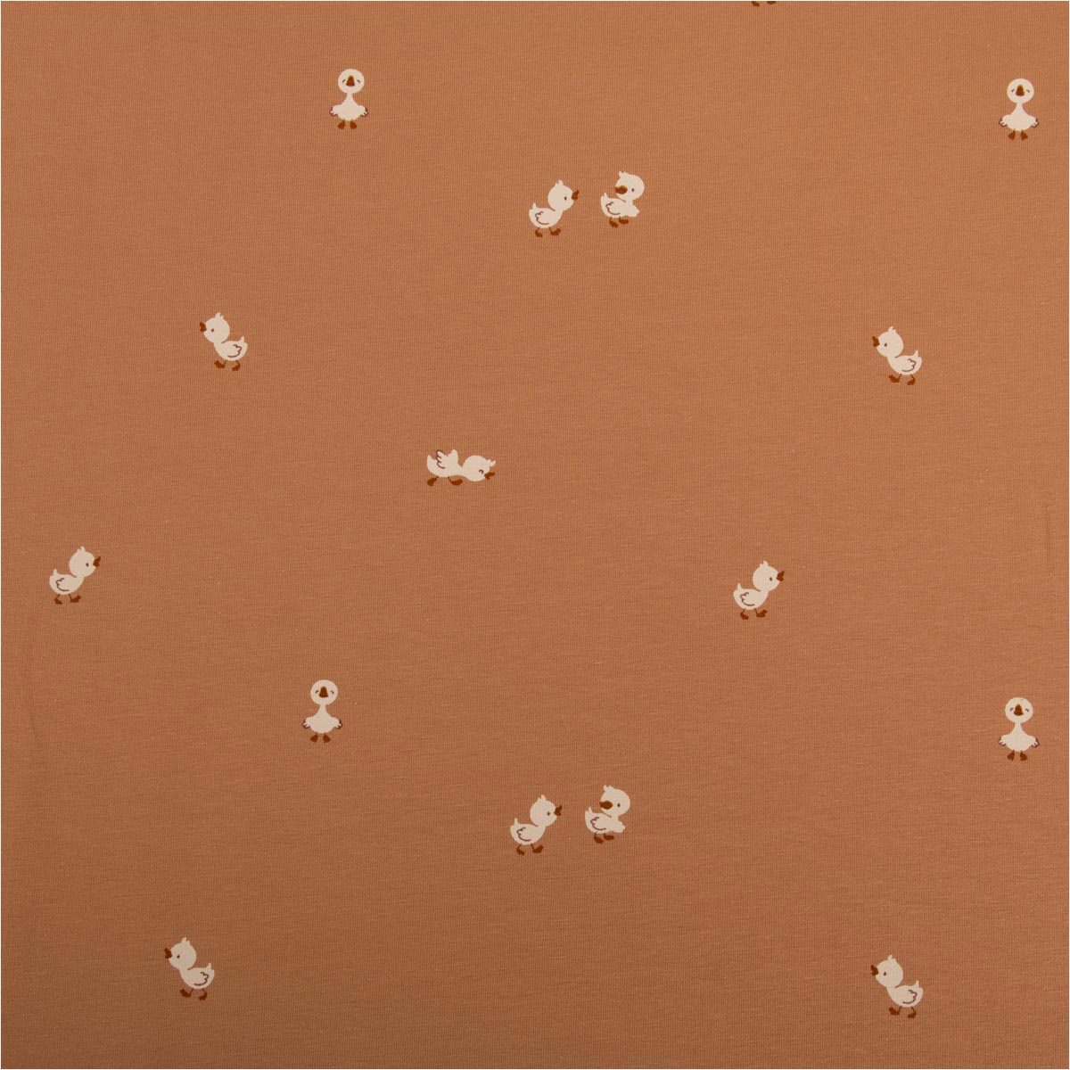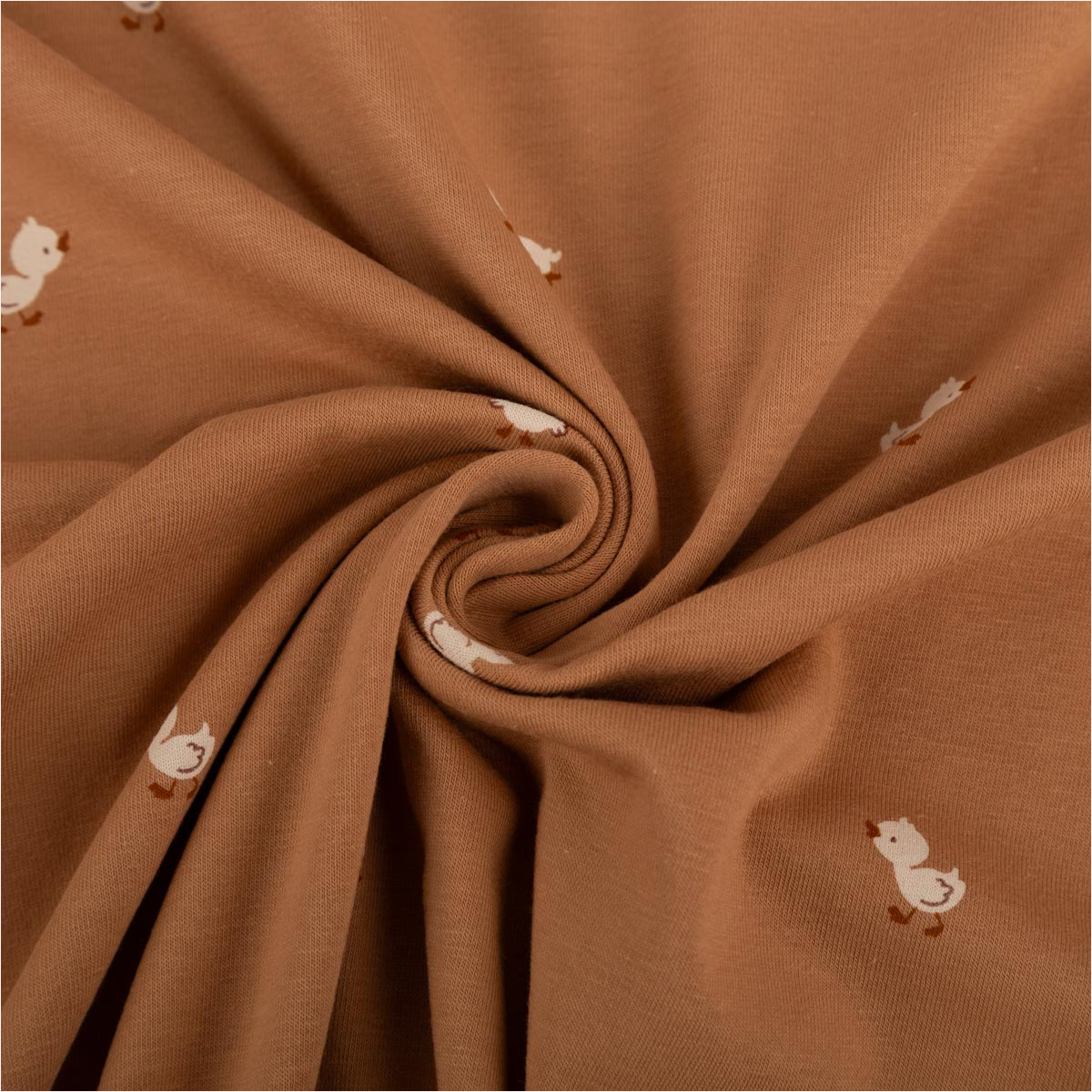 Baumwolljersey Entchen hellbraun – weicher Kinderstoff aus Baumwolle mit Elasthan