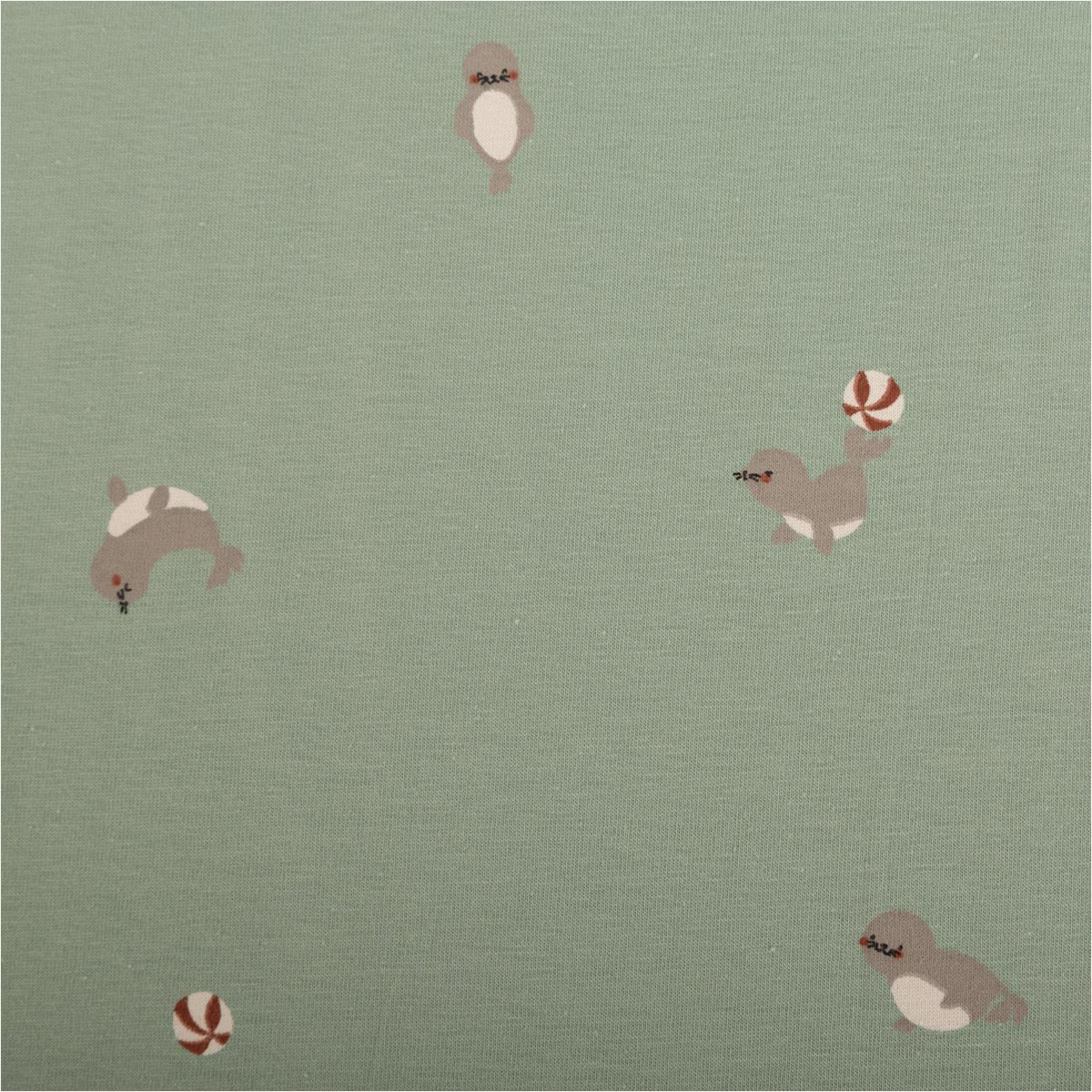 Weicher Baumwolljersey mit niedlichen Robben auf mintblauem Grund