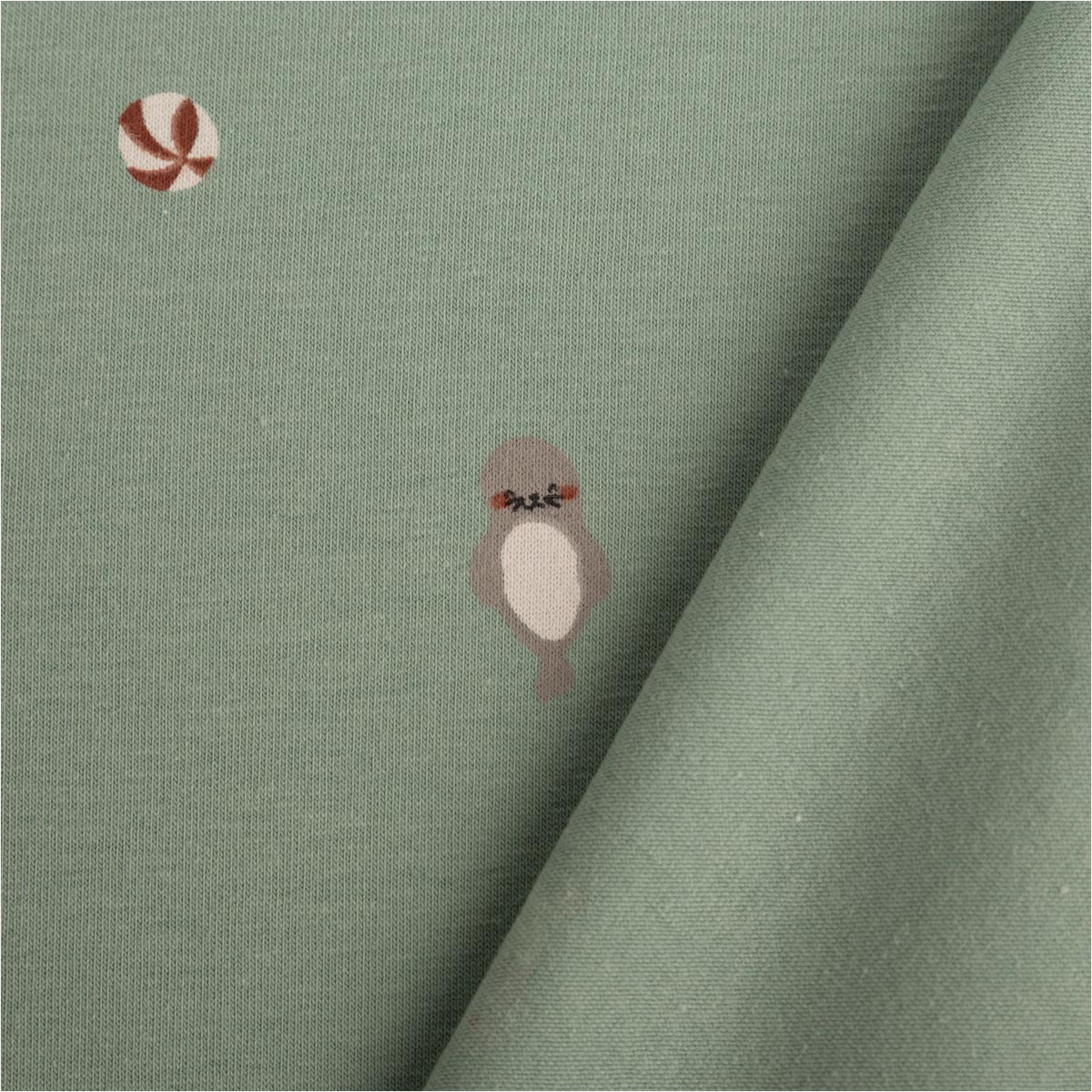 Dieser Baumwolljersey mit Robbenmotiv auf mintblauem Hintergrund sorgt für fröhliche Nähmomente! Der Stoff ist angenehm weich, elastisch und atmungsaktiv – perfekt für Babykleidung, Kinder-Outfits oder maritime Accessoires.